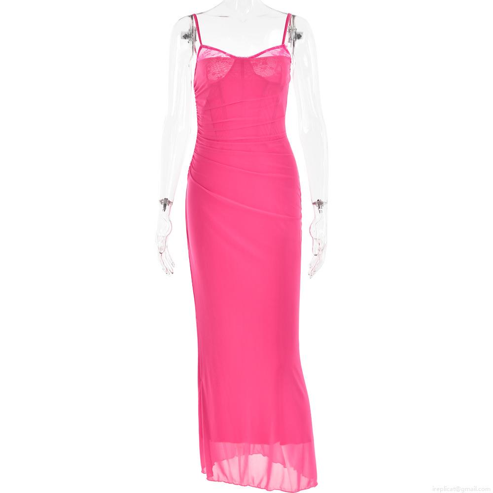 • Women Sexy Lace Patchwork Mesh Corset Maxi Dress Spaghetti Strap High Waist Bodycon Split Party Evening Long Dress for Women