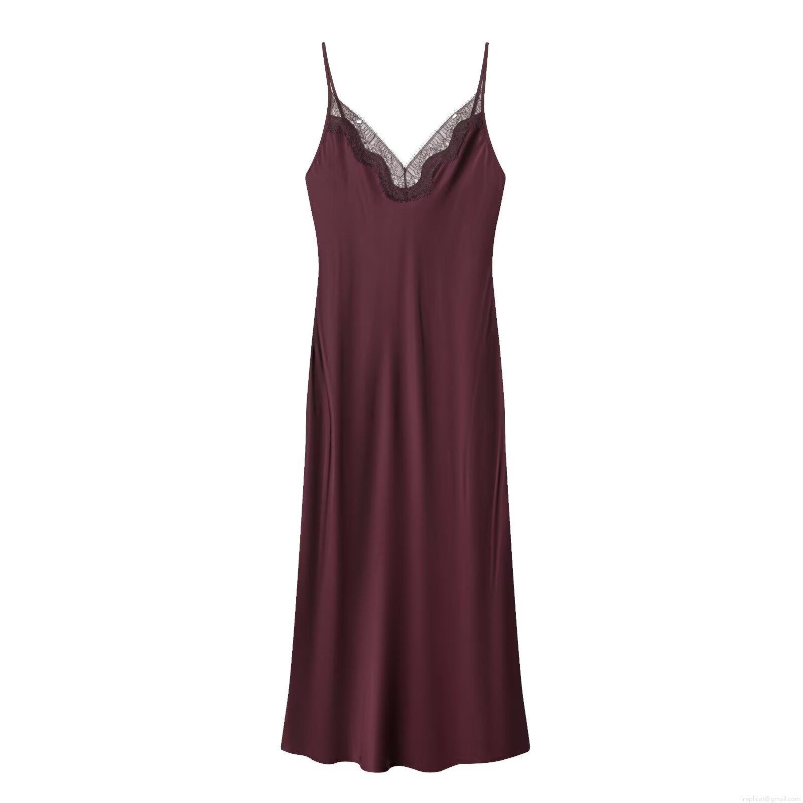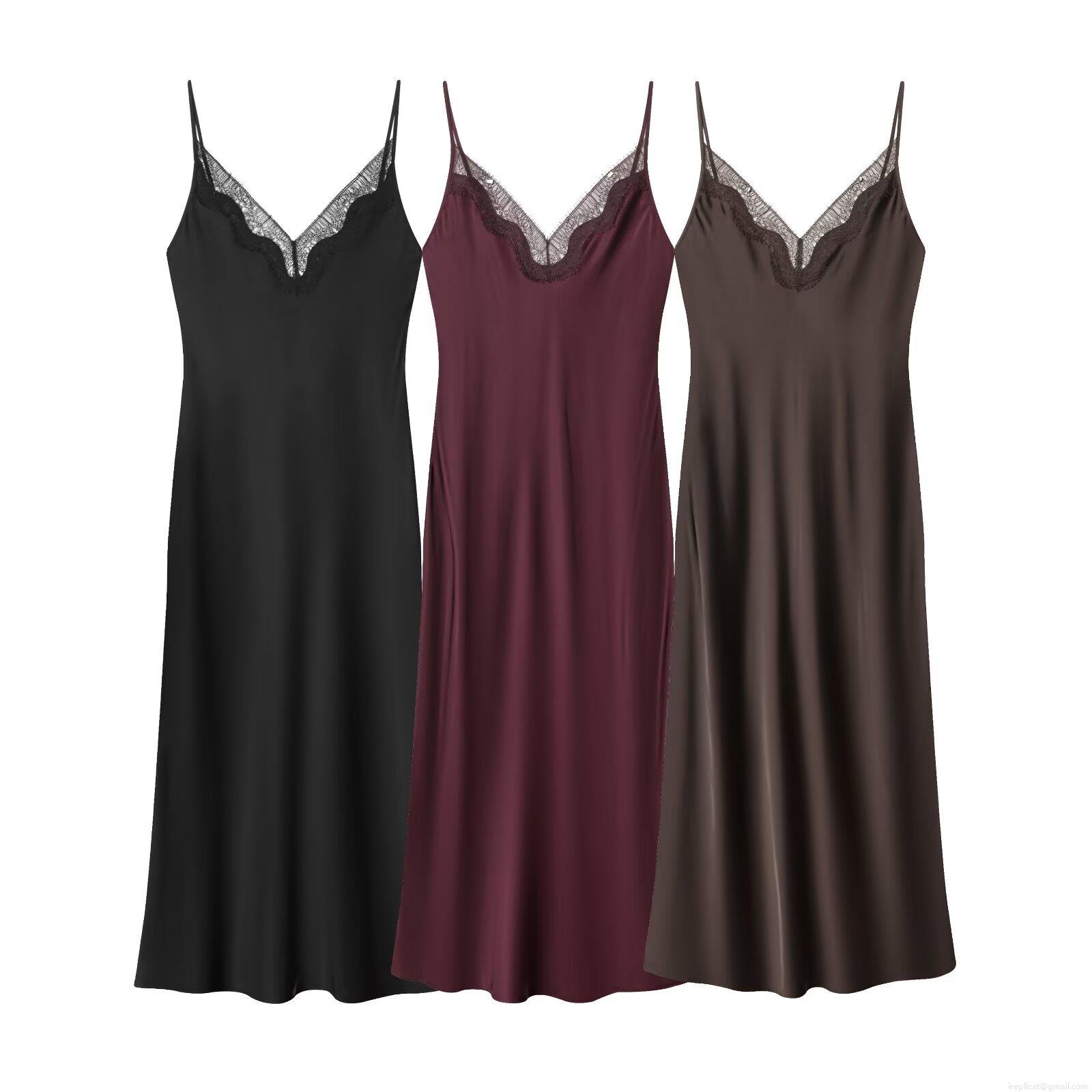 • Women Sexy Lace Trim Satin Slip Dress V-Neck Spaghetti Strap Maxi Dress Elegant Silk Texture Nightgown Party Evening Clubwear