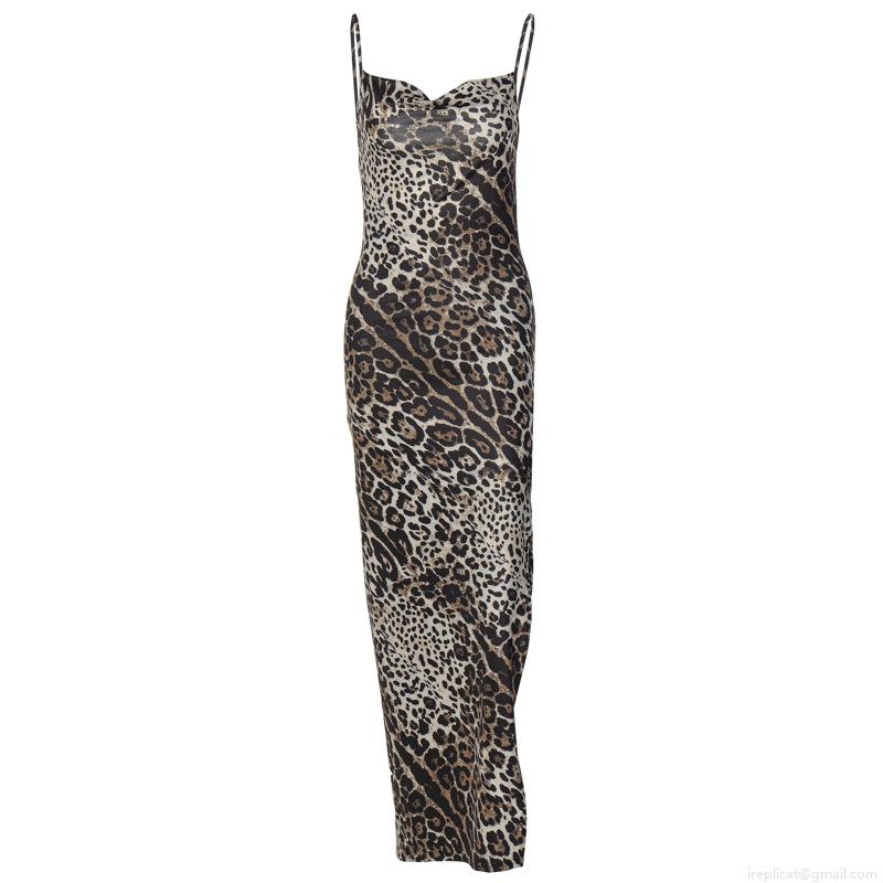 • Women Sexy Leopard Zebra Print Backless Cami Maxi Dress Elegant High Slit Polyester Spandex Bodycon Long Dress For Party Club Vacation