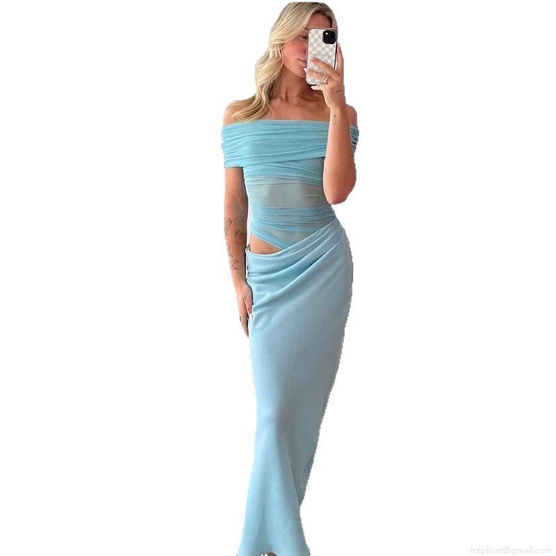 • Women Sexy Off Shoulder Maxi Dress Pleated Hollow Out Bodycon Long Evening Party Dress Polyester Spandex High Waist Backless Slim Fit Summer Clubwear