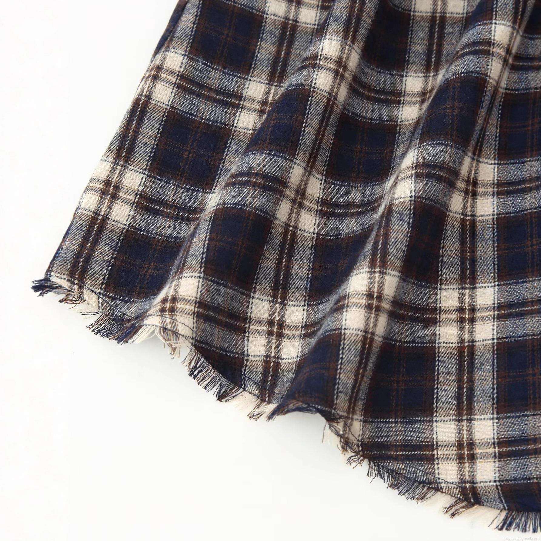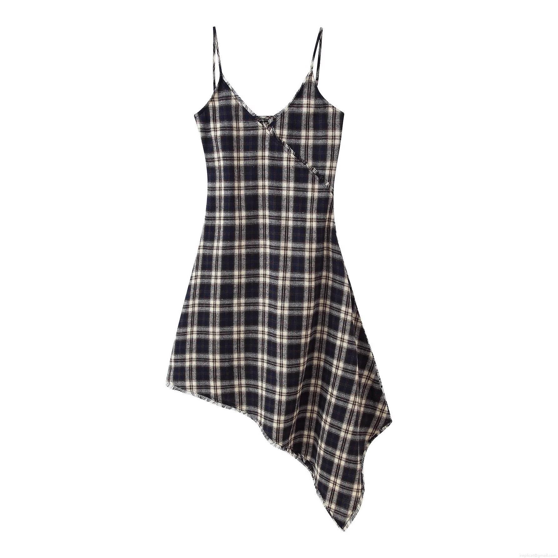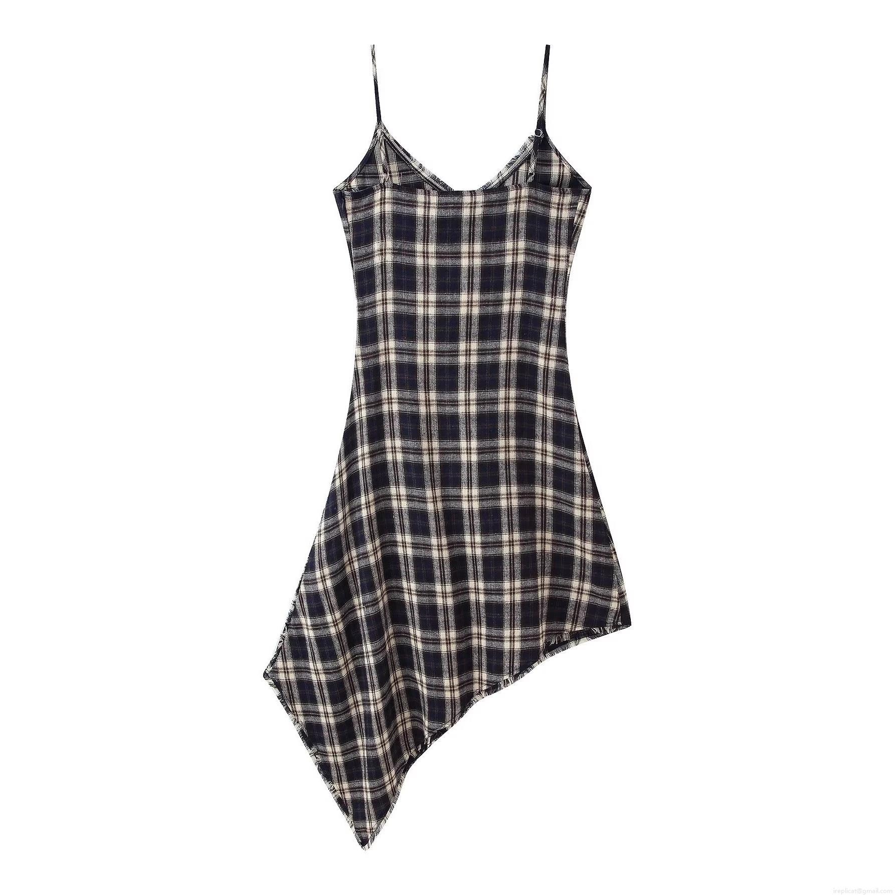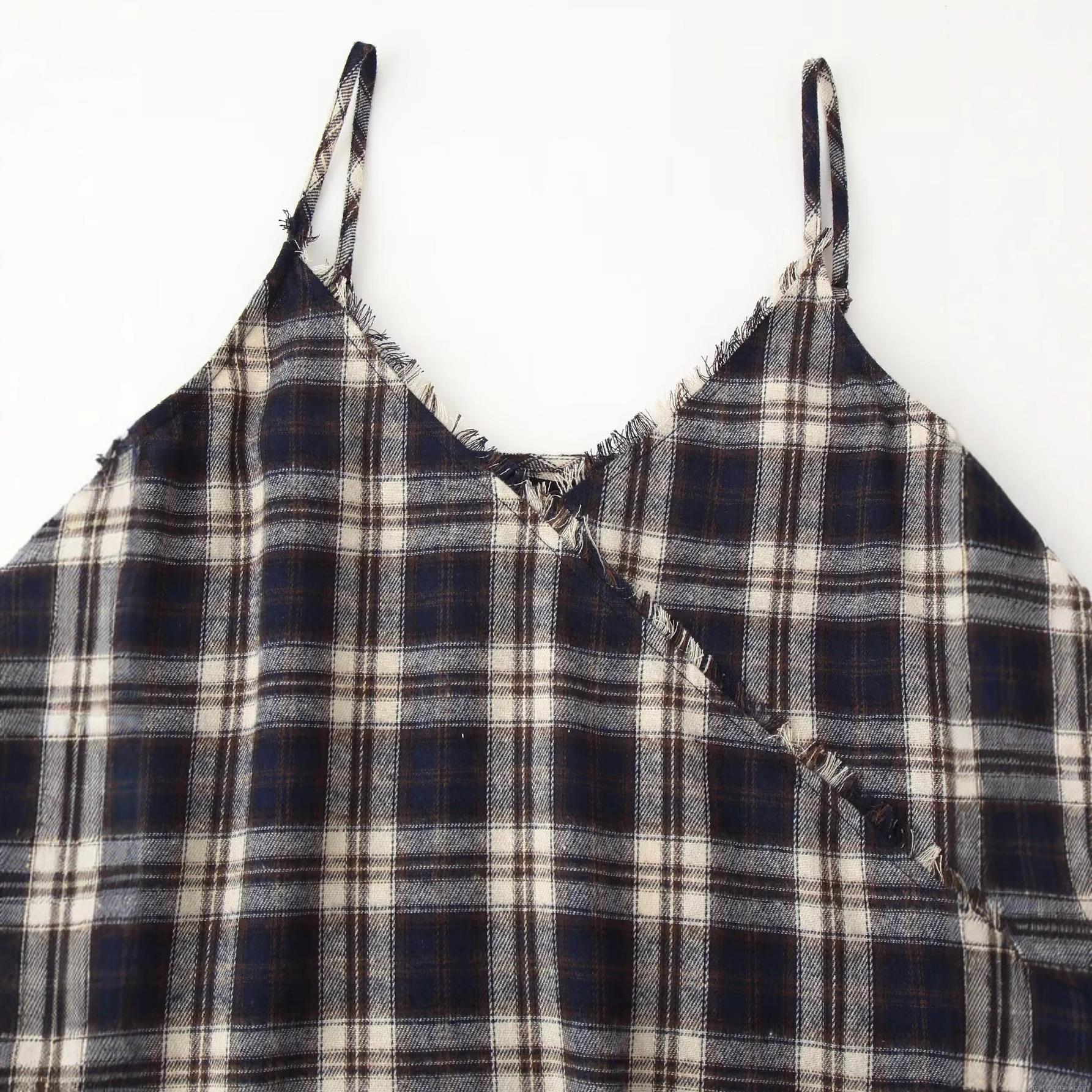 Checkered Pattern, V-neck, Irregular Cut, Raw Edge Decoration, Thin Straps