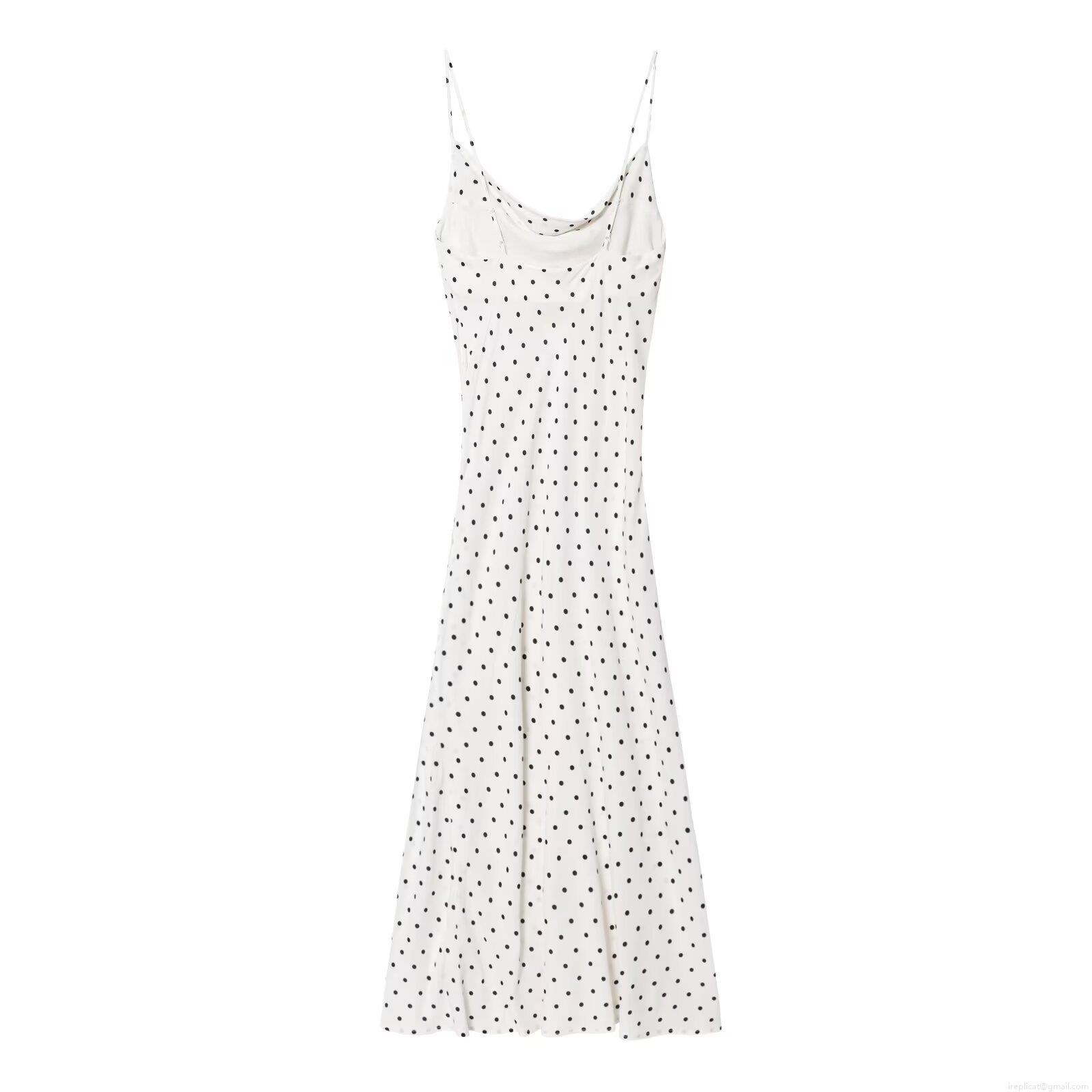• Women Sexy Polka Dot Maxi Dress Cowl Neck Backless Adjustable Thin Strap Summer Sling Long Dress Elegant Party Vacation Dress For Ladies