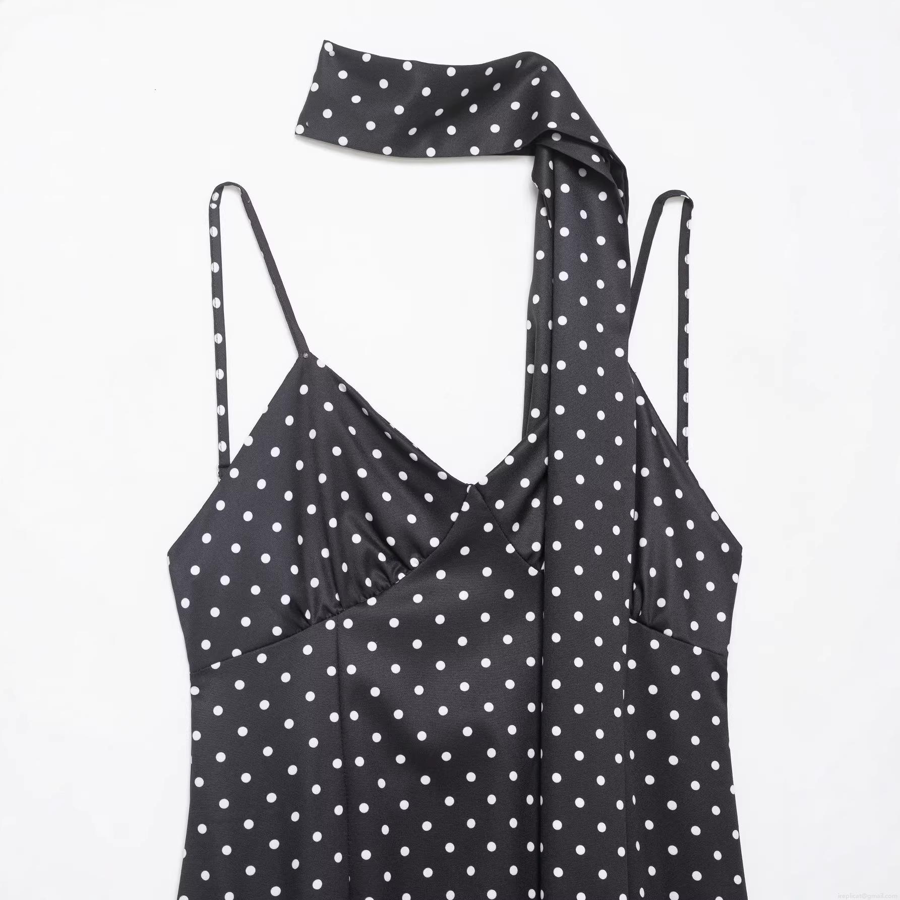 • Women Sexy Polka Dot Maxi Dress With Matching Scarf Sleeveless Spaghetti Strap V-Neck Backless Slim Fit Polyester Long Dress For Summer Party Dating Clubwear