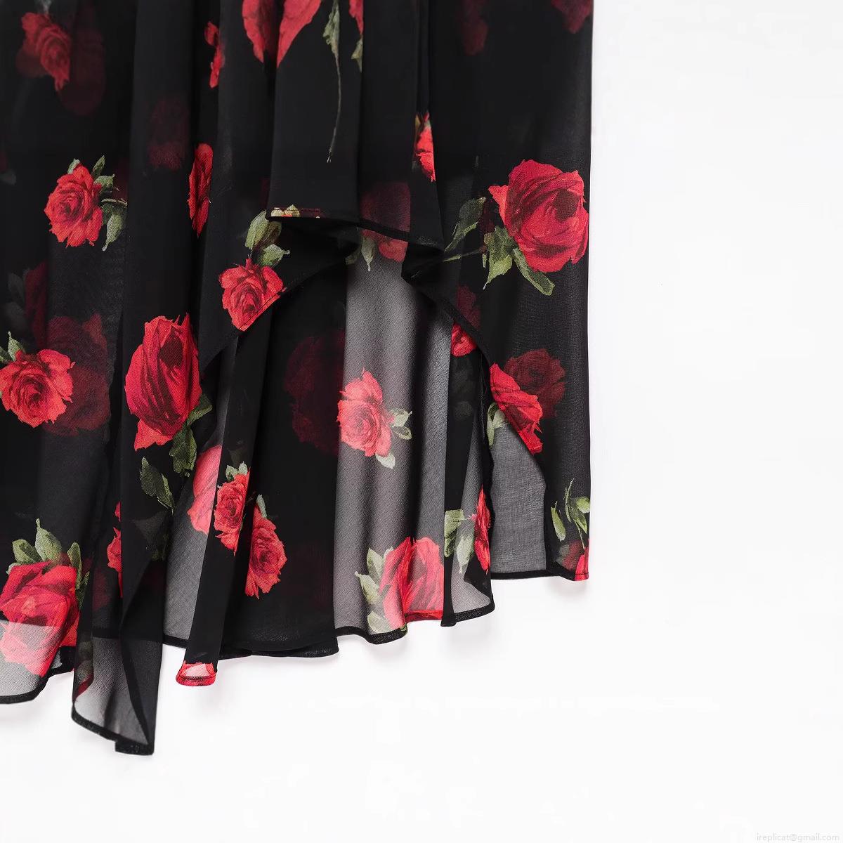 Floral Print, Asymmetric, Ruffles, Flowers, Red Roses, Sloping Shoulders, Irregular Hem, Thin Straps