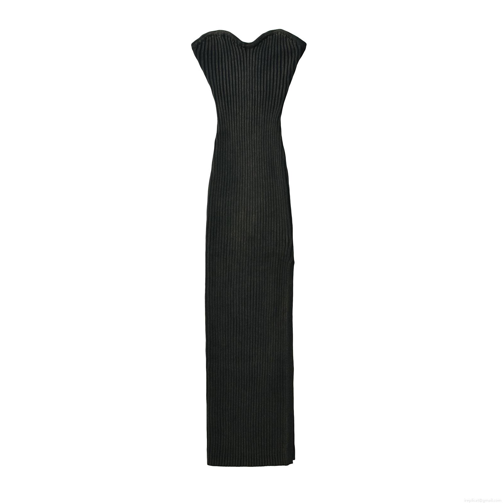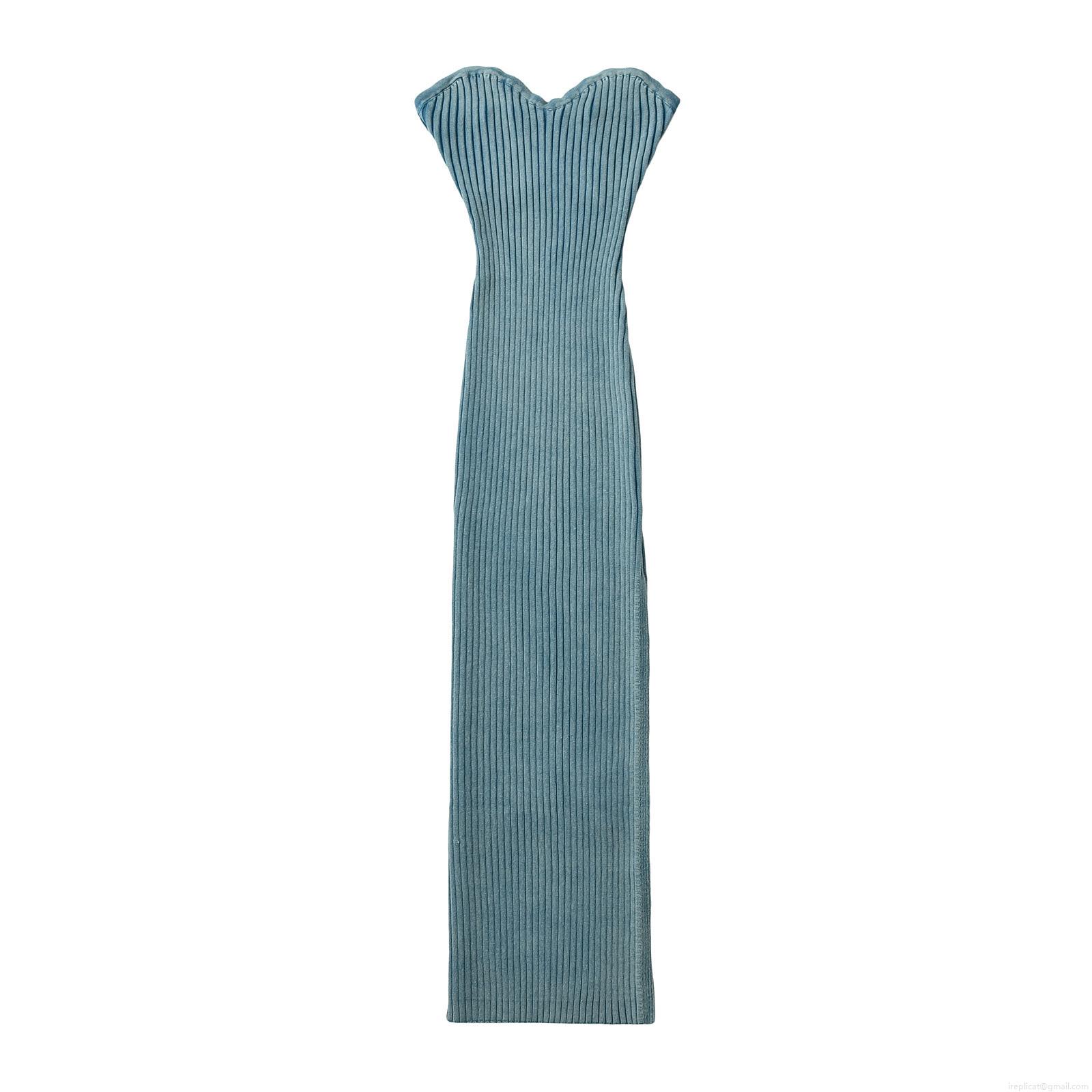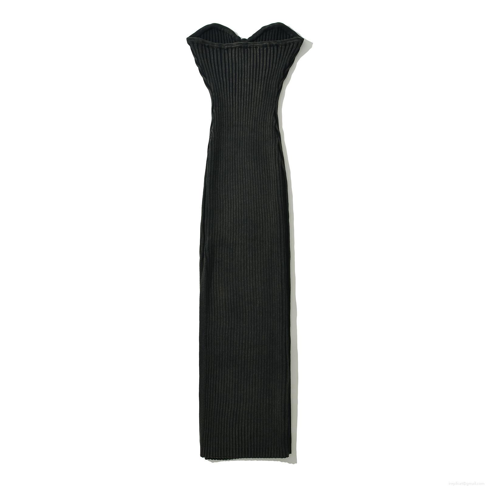 • Women Sexy Ribbed Knit Tube Top Maxi Dress Heavy Industry Distressed Side Slit Bodycon Long Dress Solid Color Elegant Autumn Streetwear Party Night Clubwear