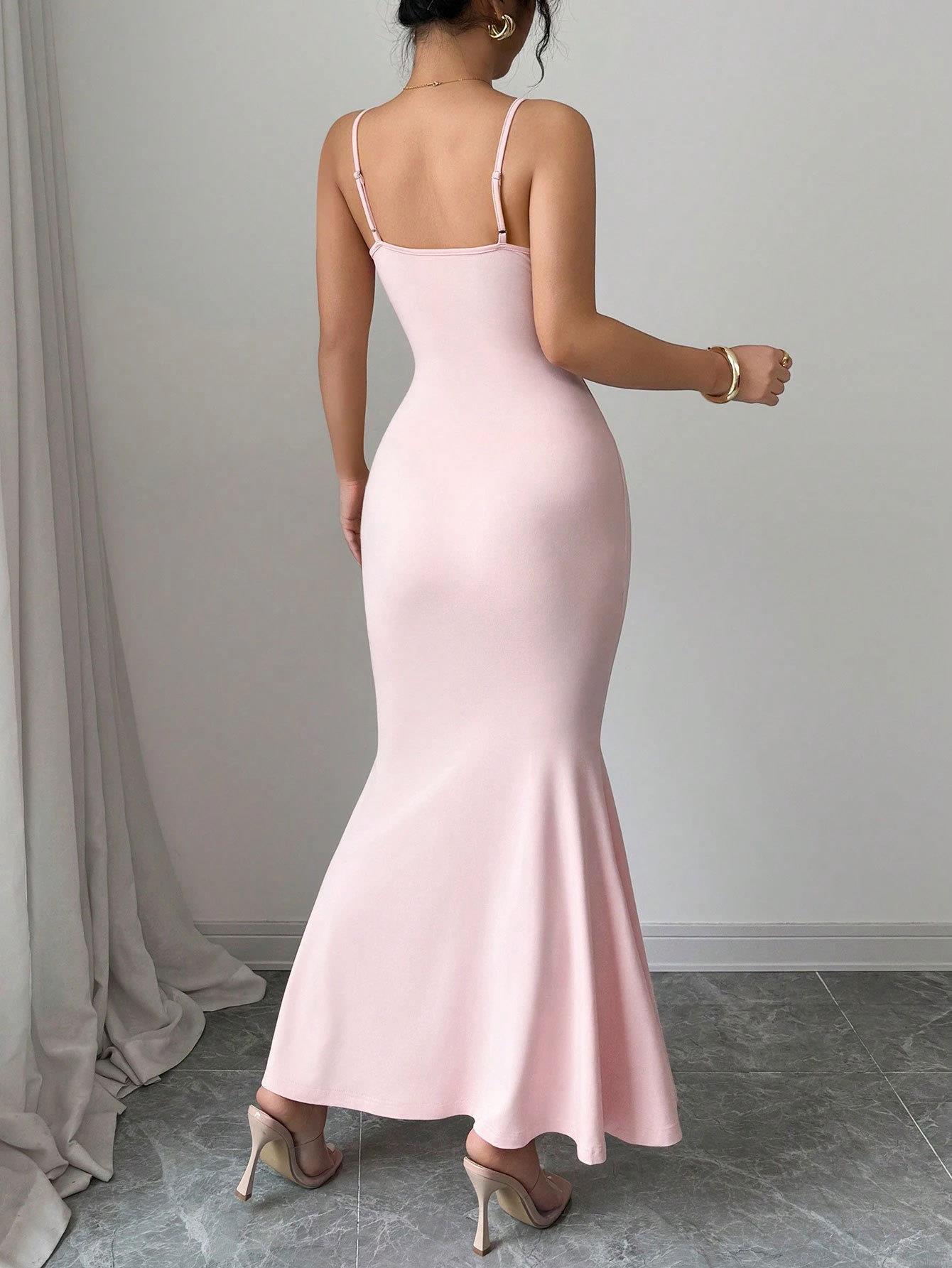 • Women Sexy Ruched Cami Fishtail Maxi Dress 95% Polyester 5% Elastane Slim Fit Bodycon Sleeveless Evening Party Dress For Ladies