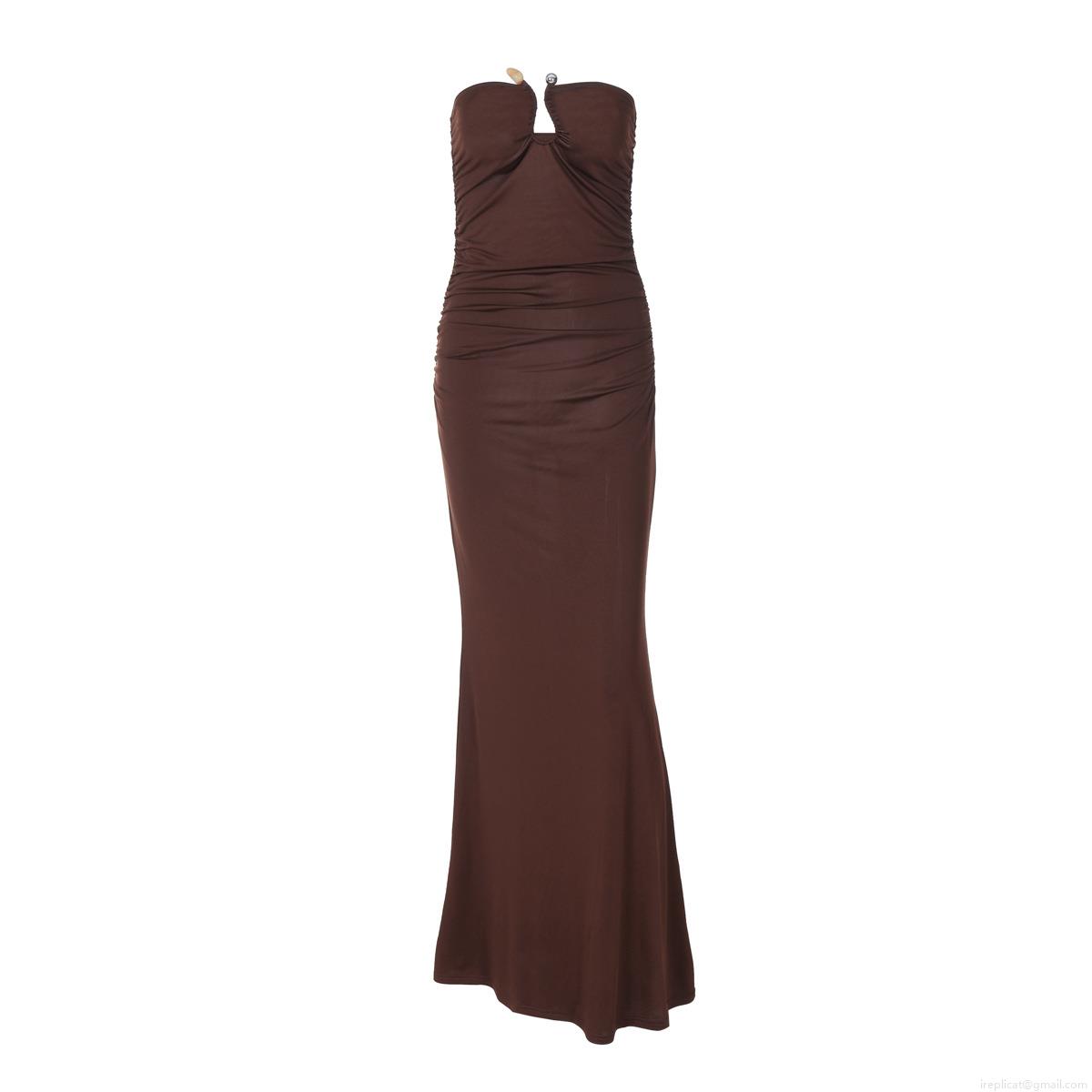 Solid Color, Splice, Pleats, Backless, Strapless, U-neck