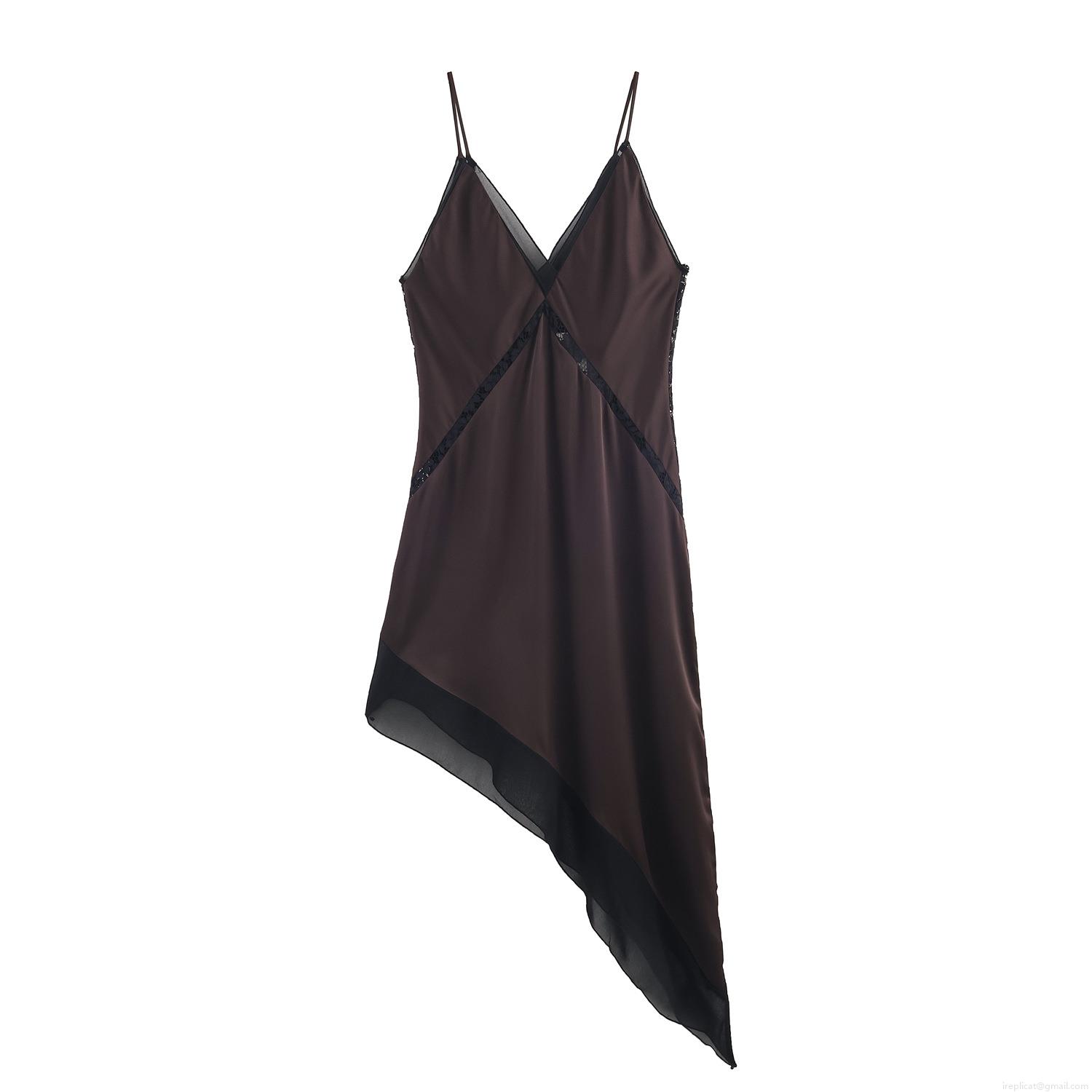 Solid Color, Lace Patchwork, Irregular Hem, Satin Finish, Asymmetrical Cut
