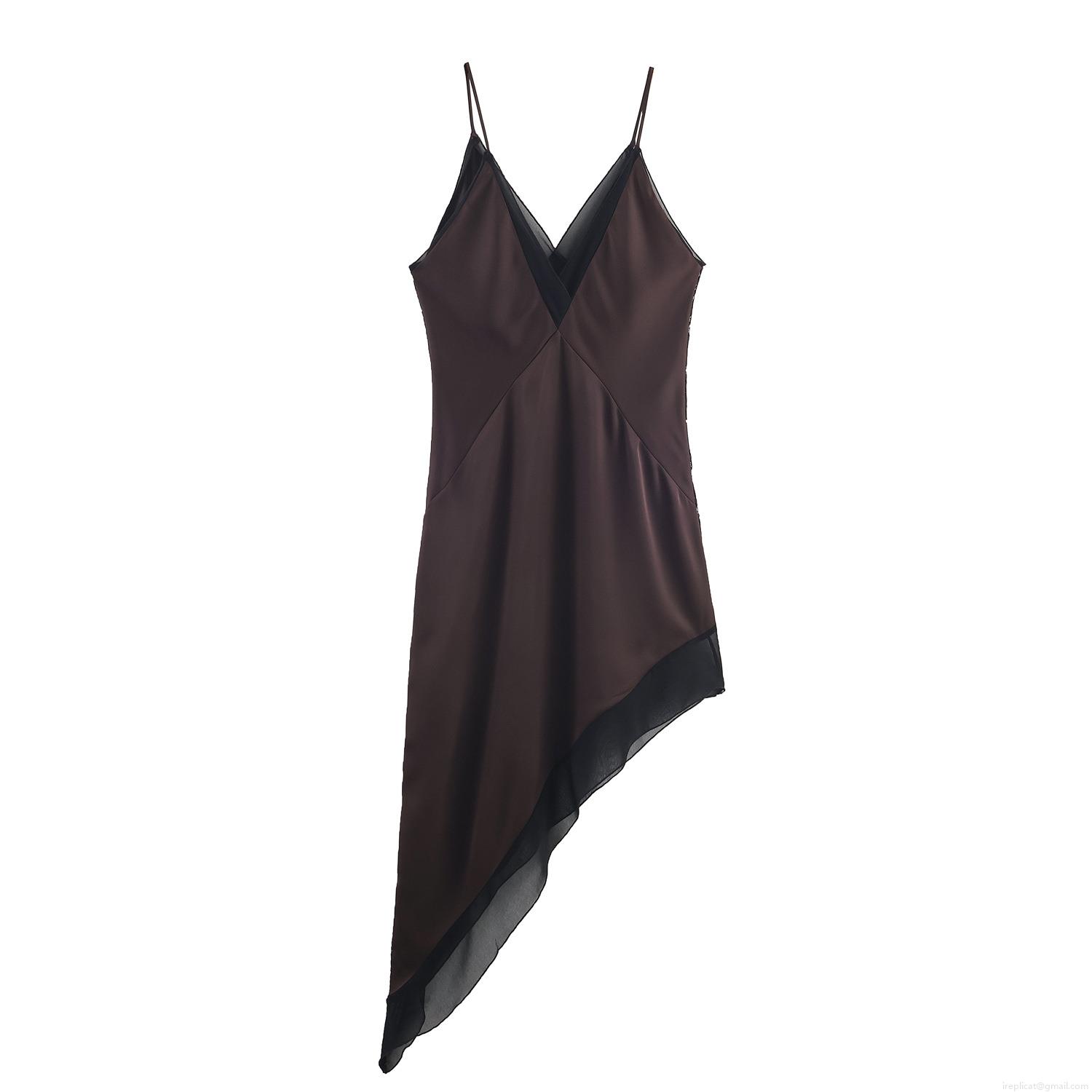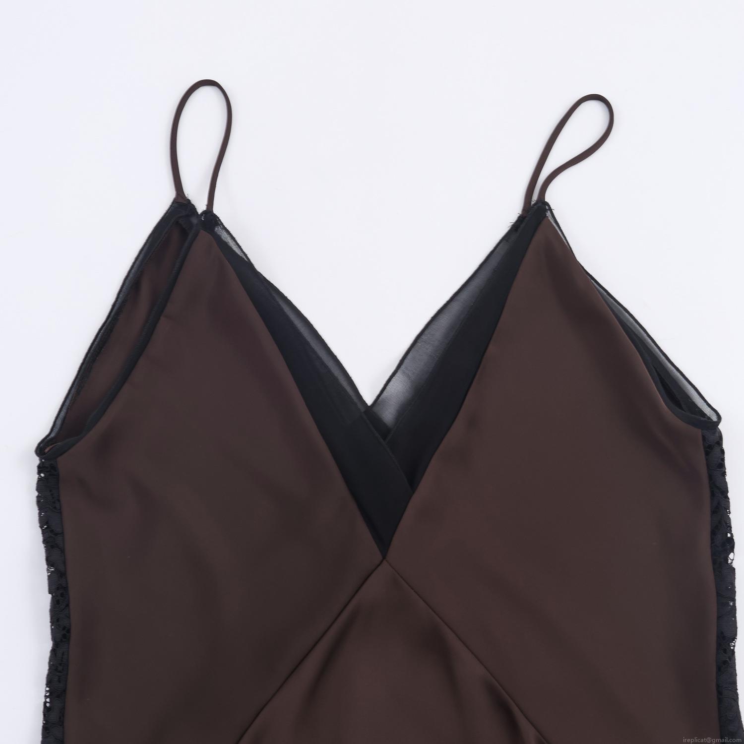 • Women Sexy Satin Camisole Maxi Dress Lace Patchwork Deep V Neck Asymmetric Hem Elegant Boudoir Style Sleeveless Long Dress For Party Dating Chocolate Brown