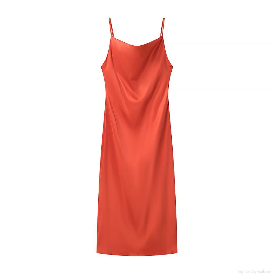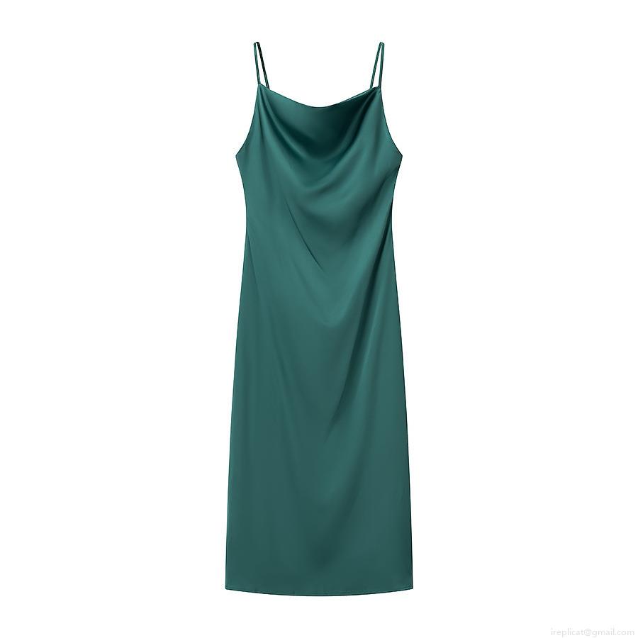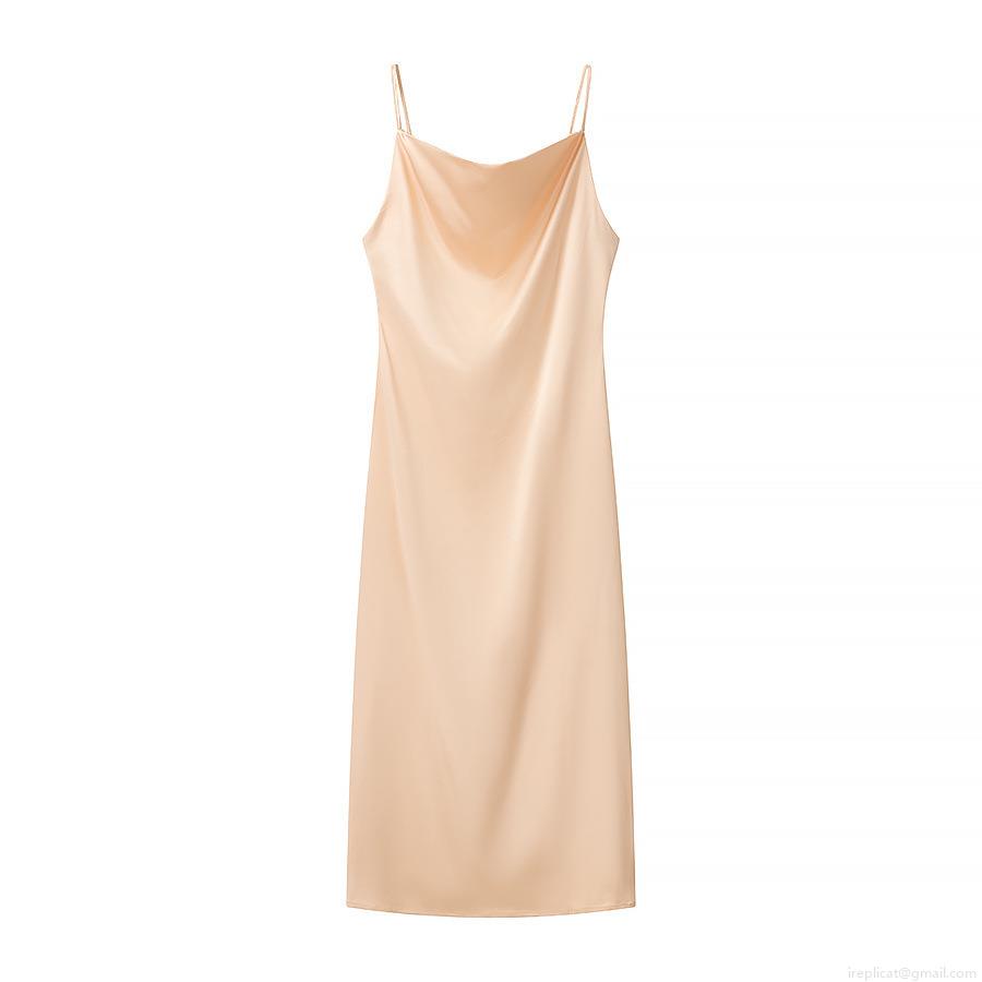 • Women Sexy Satin Cowl Neck Cami Maxi Dress Polyester Sleeveless Slit Back Evening Party Streetwear Clubwear Solid Color Long Dress