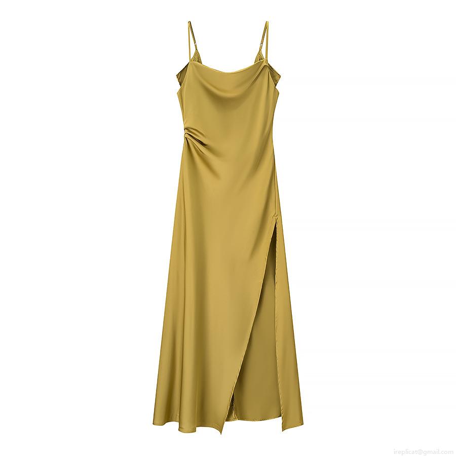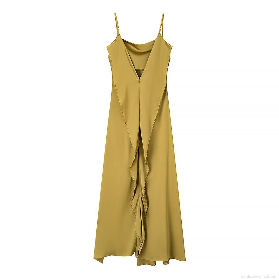 Solid Color, Backless, Side Fork, Metal Adjustment Buckle, Thin Shoulder Straps, Drooping Collar