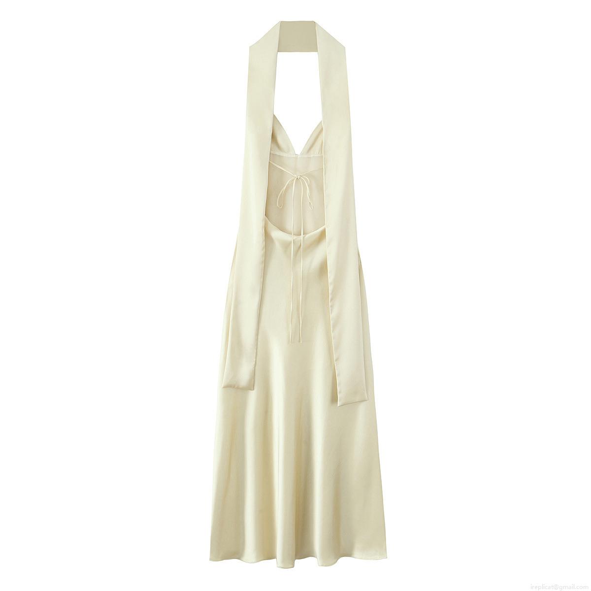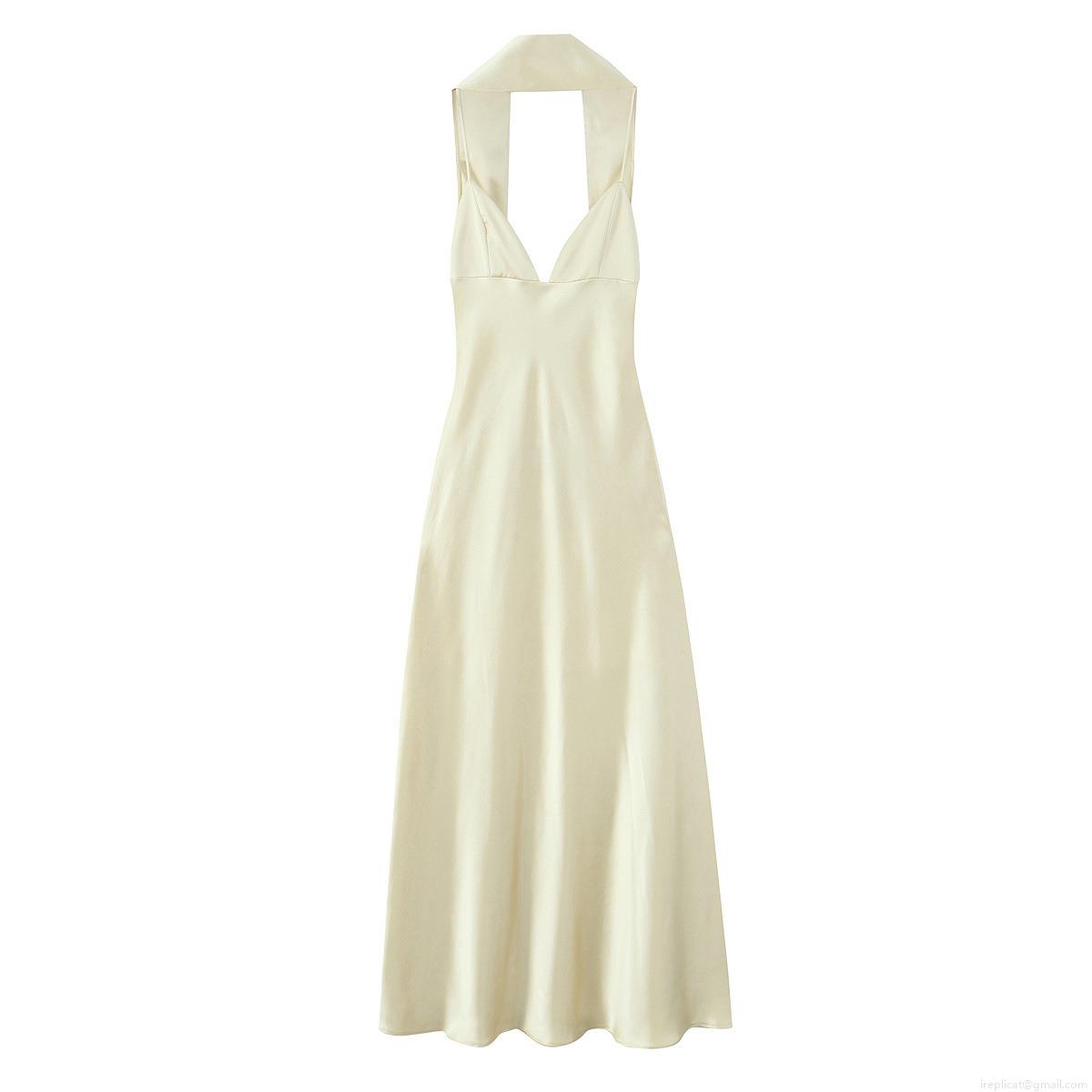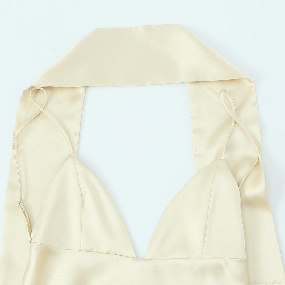 • Women Sexy Satin Halter Maxi Dress Deep V Neck Backless Sleeveless Silk Like Long Dress For Evening Party Club Summer Elegant Solid A-Line Gown
