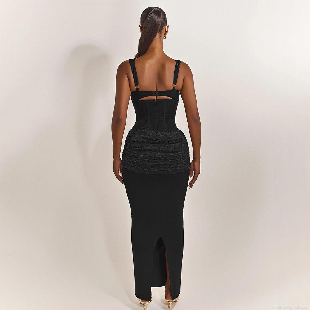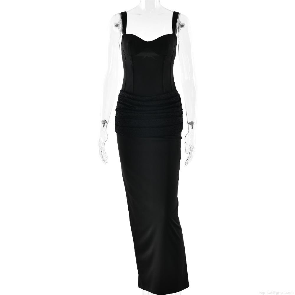 • Women Sexy Strapless Backless Fishtail Maxi Dress Elegant Polyester Lace Splicing Bodycon Evening Party Long Dress For Banquet Graduation