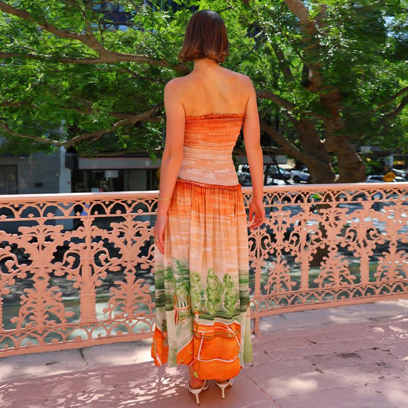 Gradient, Digital, Trees, Backless, Country Style, Pleating Process, Full Skirt, Strapless Design, 3d Impressionistic Landscape