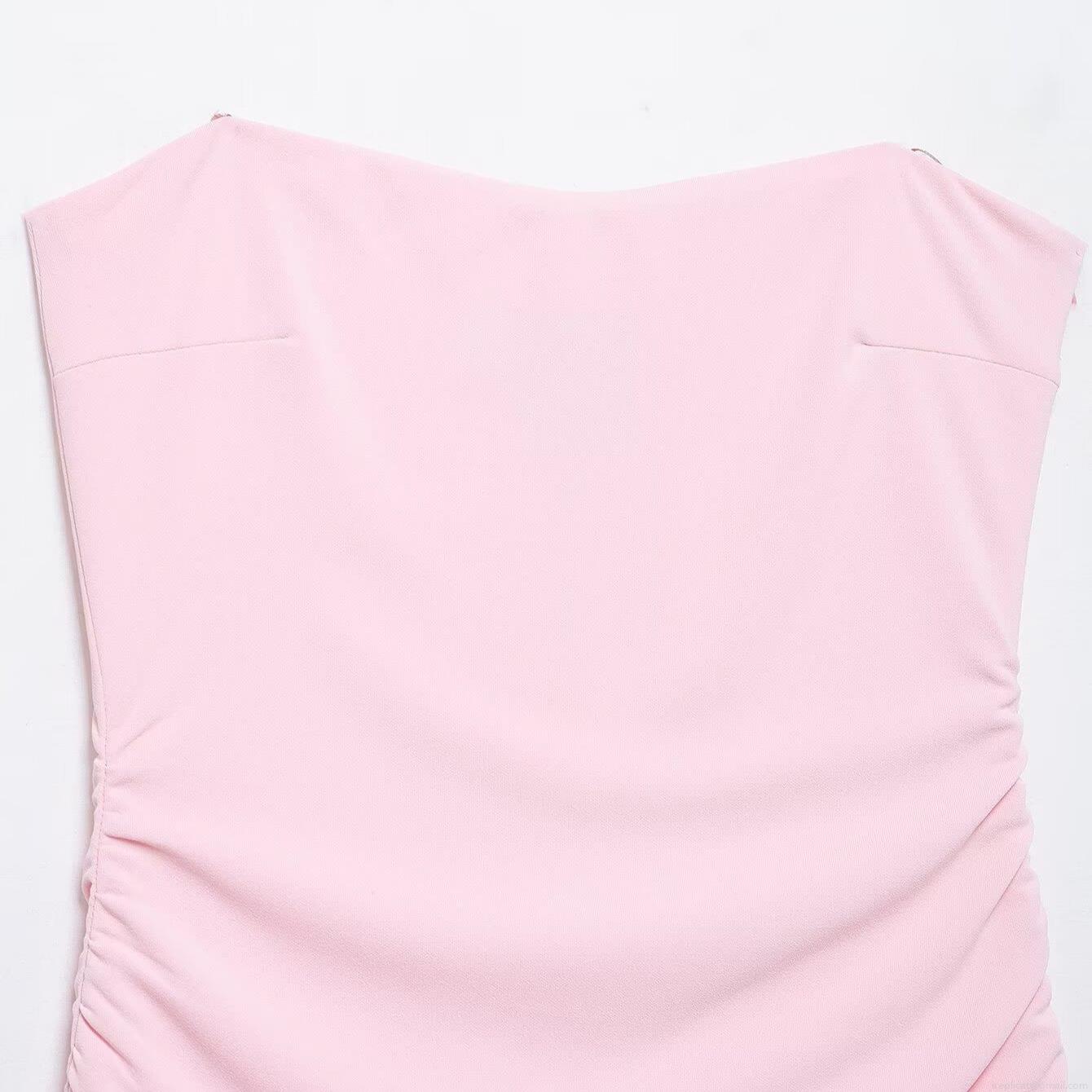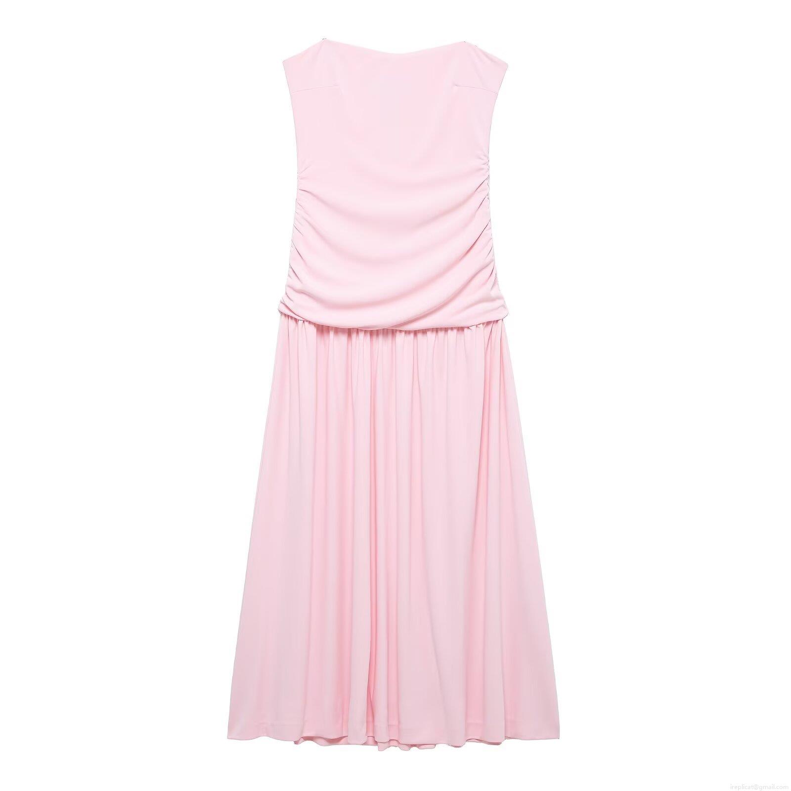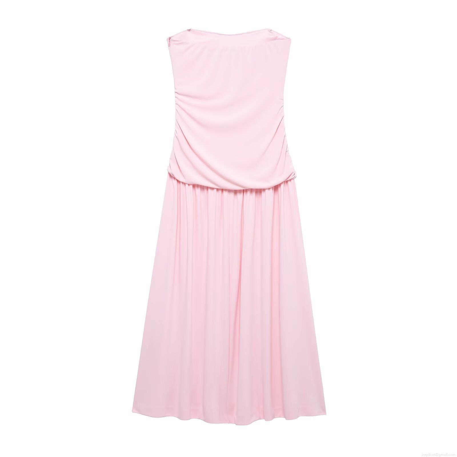 • Women Sexy Sweet Spicy Style Pleated Bandeau Maxi Dress Slim Fit Sleeveless Knit Evening Party Elegant Long Dress For Ladies
