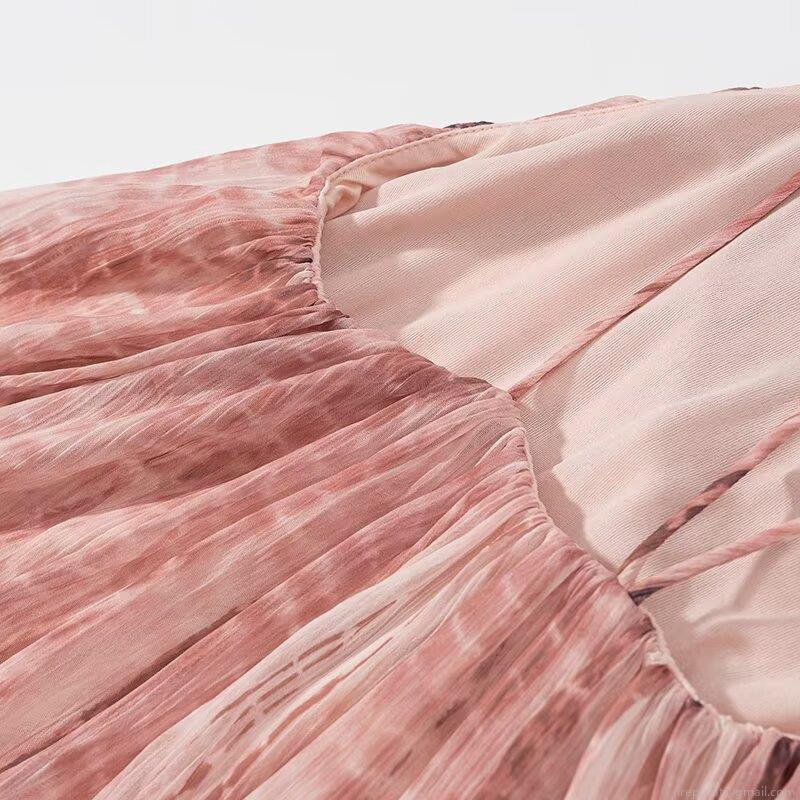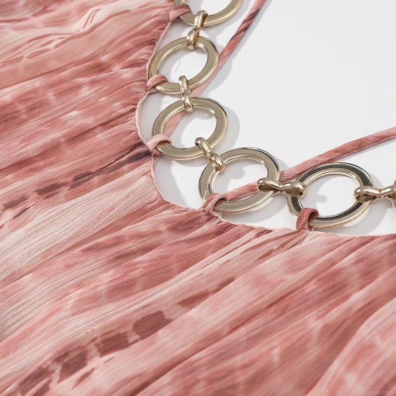 • Women Sexy Tie-Dye Maxi Dress With Metal Ring Chain Detail Elegant Sleeveless V-Neck Pleated Polyester Long Dress For Party Vacation Summer