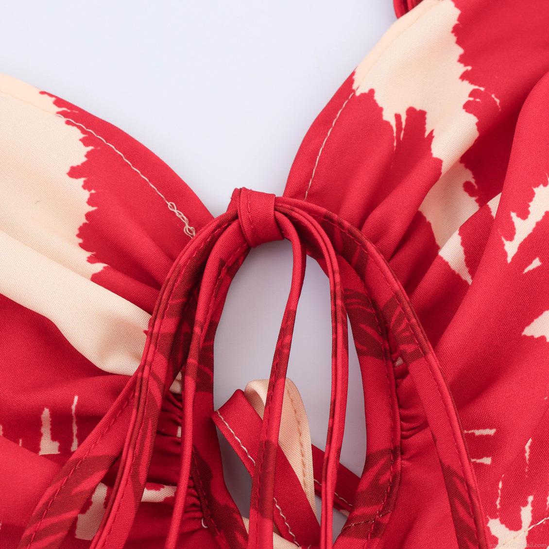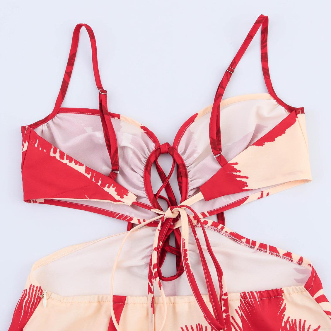 • Women Sexy Tropical Palm Tree Print Camisole Maxi Dress With Waist Cutout Polyester Spaghetti Strap Tie Up Chest Summer Vacation Beach Dress