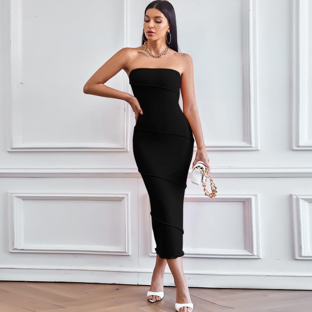 • Women Sexy Tube Top Bodycon Maxi Dress Ribbed Knit Sleeveless Tiered Solid Color Long Dress For Summer Beach Party Clubwear Slim Fit Elegant Evening Gown
