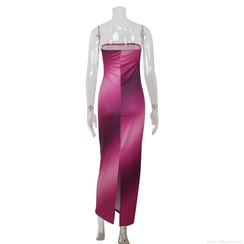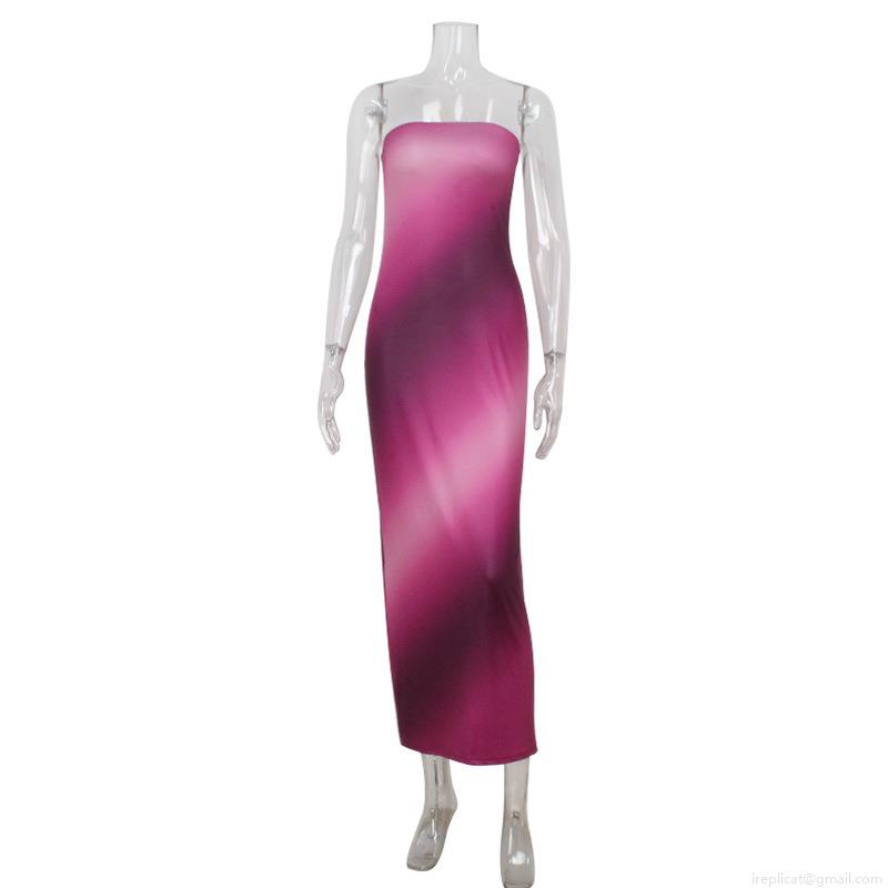 • Women Sexy Tube Top Maxi Dress Gradient Print Bodycon Long Dress For Beach Vacation Elegant Slim Fit Sleeveless Back Slit Polyester Spandex Sundress