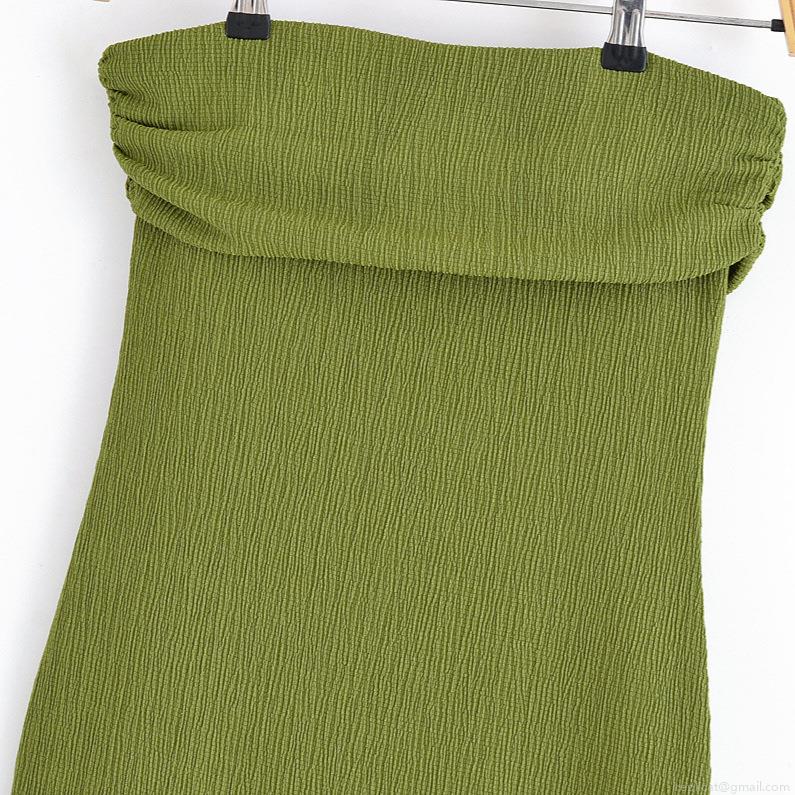 Solid Color, Pleats, Off-shoulder, Strapless, Forked, Wrinkled Texture