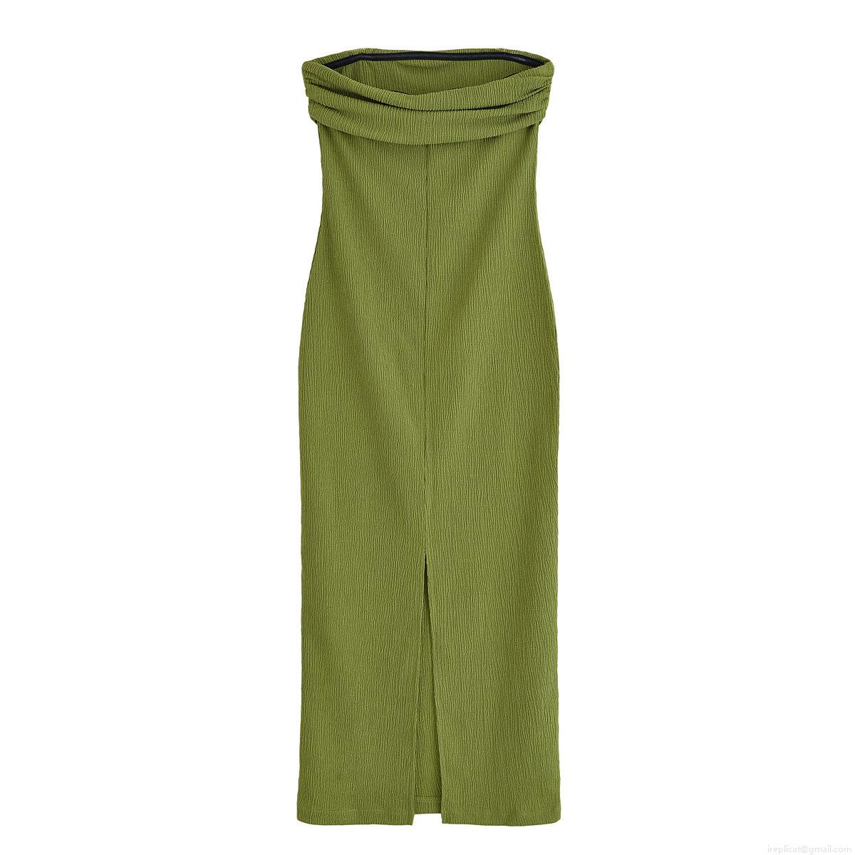 • Women Sexy Tube Top Maxi Dress Pleated Polyester Spandex Off Shoulder Bodycon Slim Fit Party Wedding Date Night Summer Elegant Chic Long Pencil Dress with Slit