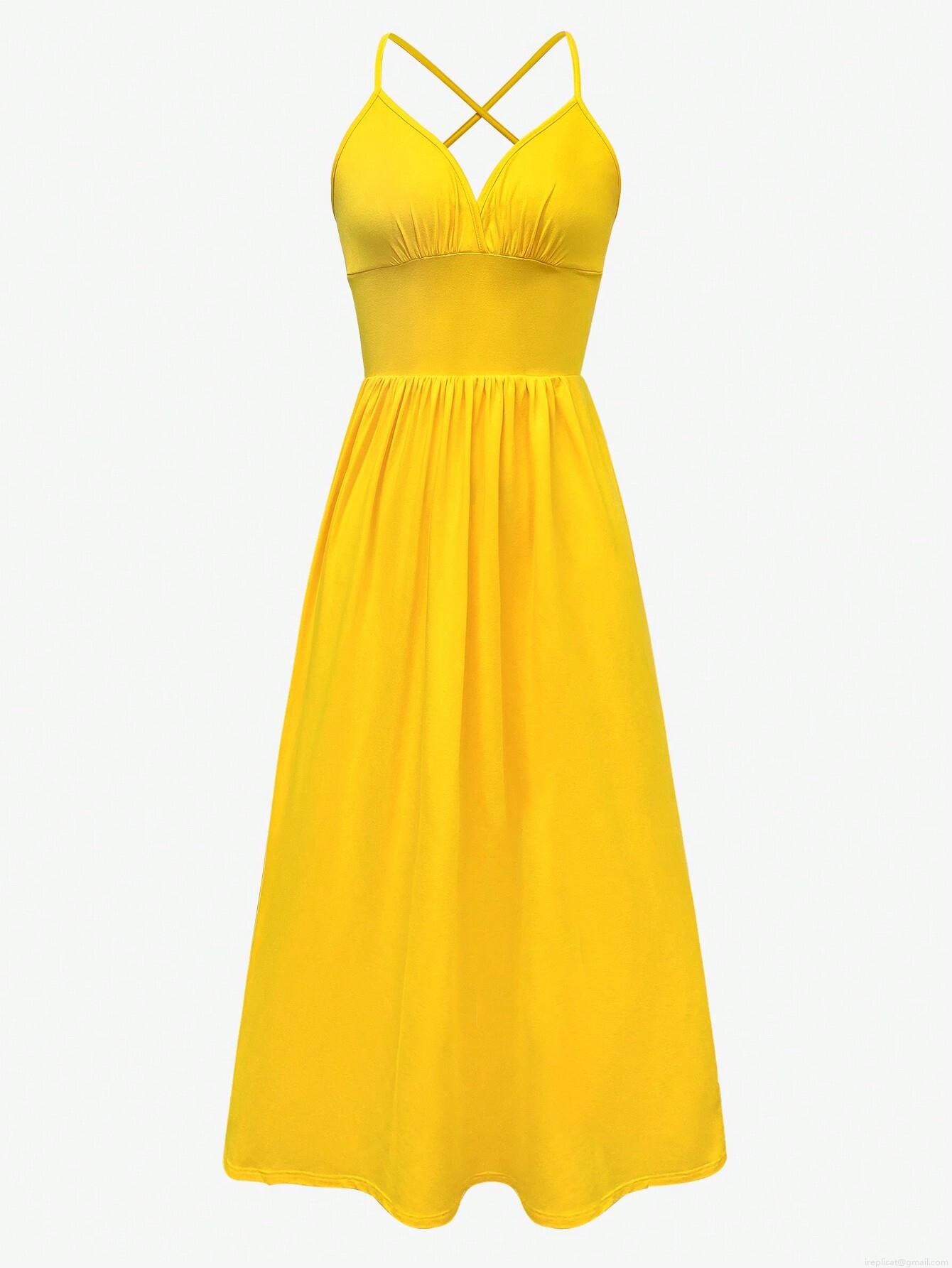 Women Sexy V Neck Backless Polyester Elastane Maxi Dress High Slit Spaghetti Strap Summer Beach Vacation Party Long Dresses