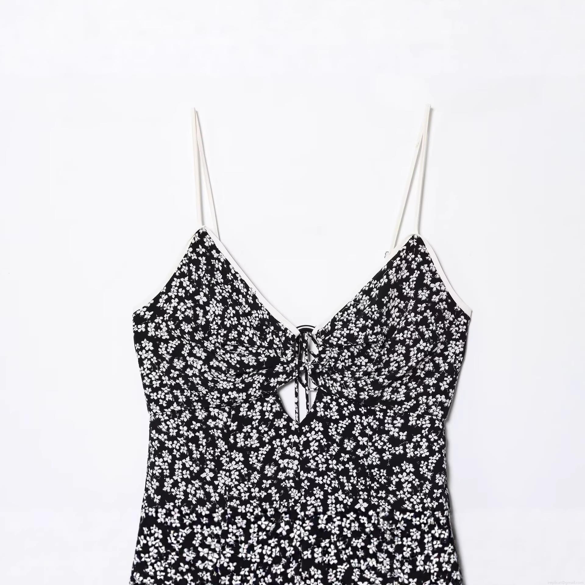 Floral Pattern, Hollow Out, Lace, Backless, Floral Print, Thin Straps