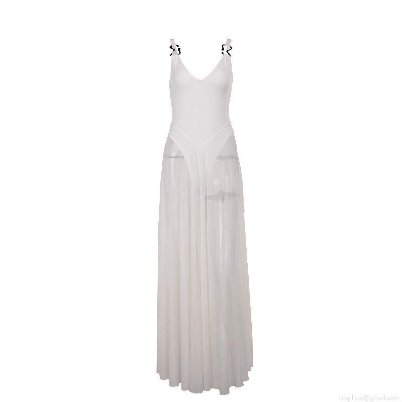 • Women Sexy V Neck Sleeveless Mesh Maxi Dress With Metal Buckles Elegant Celebrity Party Evening Backless Long Dress For Vacation