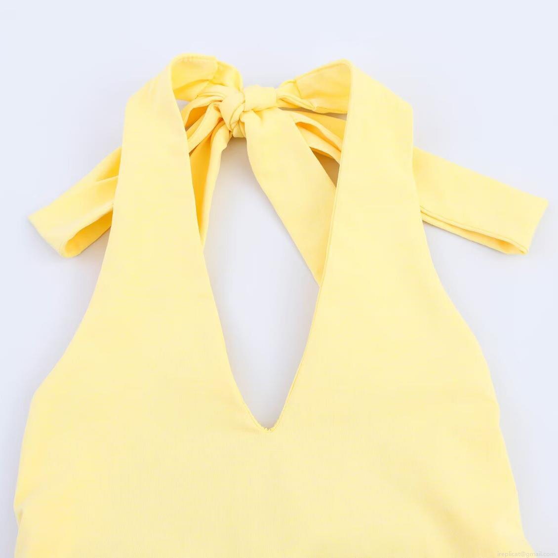 • Women Sexy Yellow Halter Neck Ruched Maxi Dress Summer Sleeveless Backless Bodycon Long Dress With Bow Detail For Party Vacation Clubwear