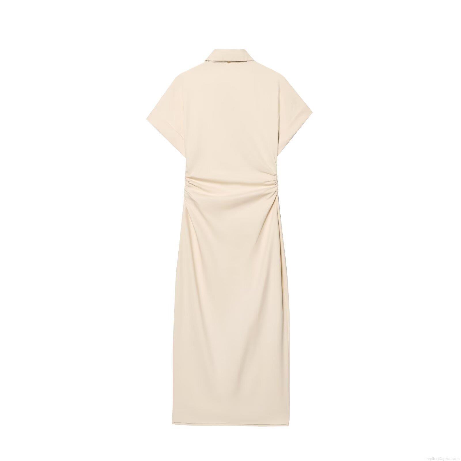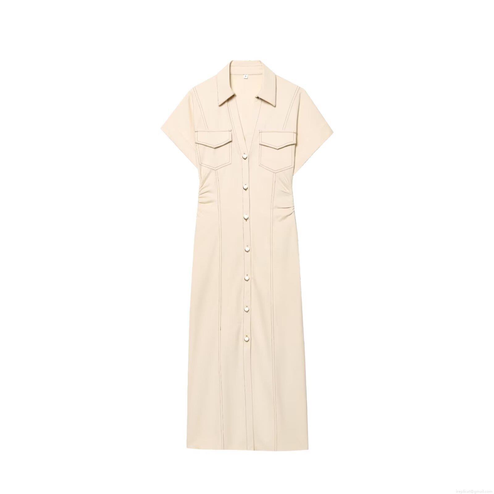 • Women Short Sleeve Shirt Maxi Dress Button Down Utility Cargo Dress With Pockets Slim Waist Lapel Collar Apricot Polyester Streetwear Summer Casual Dress