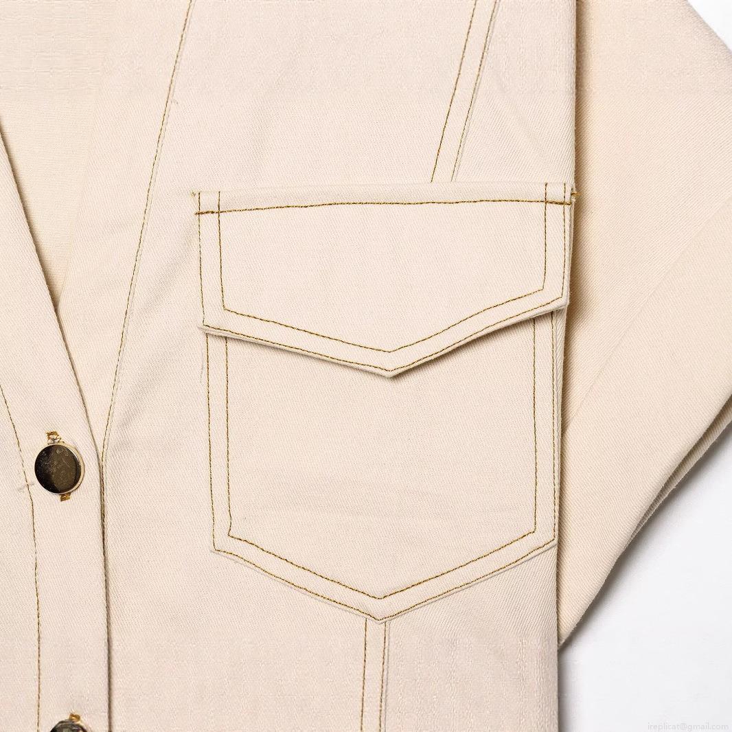 Solid Color, Pocket, Buttons, Lapel, Waist Pleats