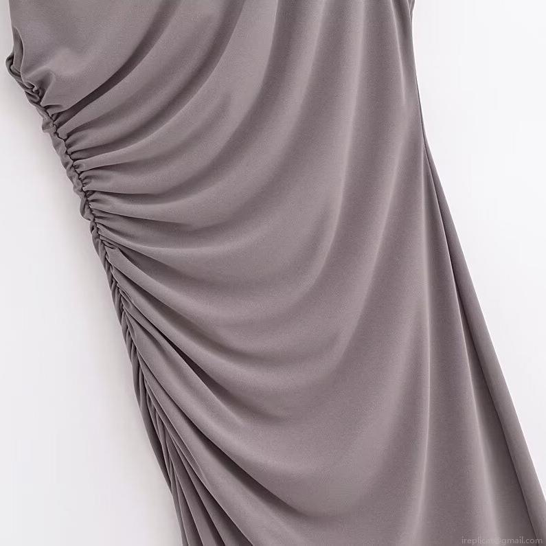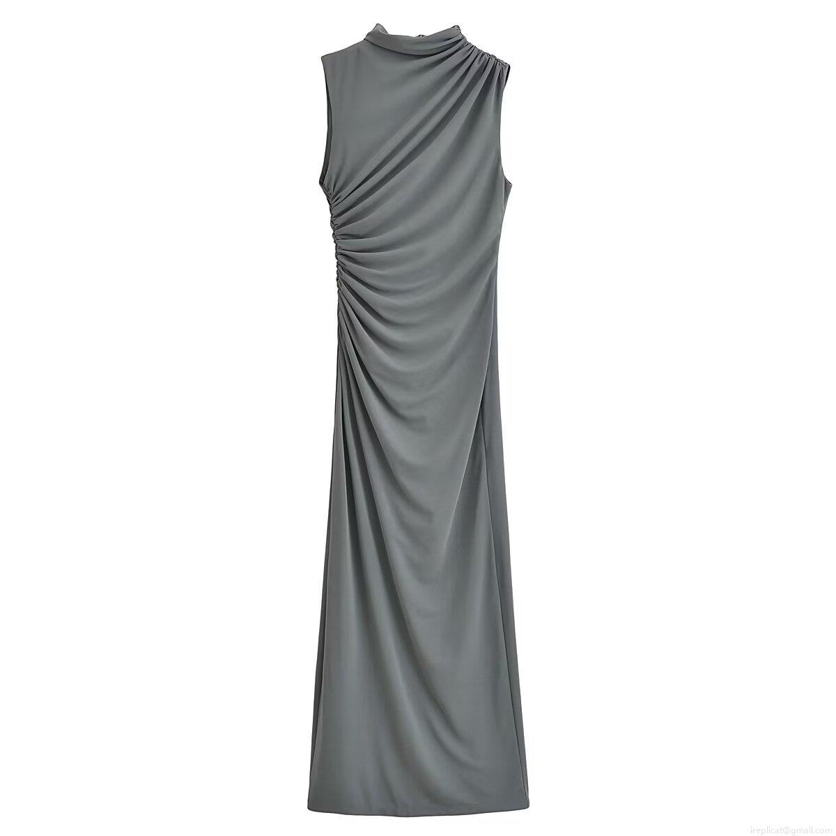 • Women Sleeveless High Neck Ruched Maxi Dress Cotton Polyester Knitted Slim Fit Side Pleated Long Dress Elegant Party Casual Streetwear