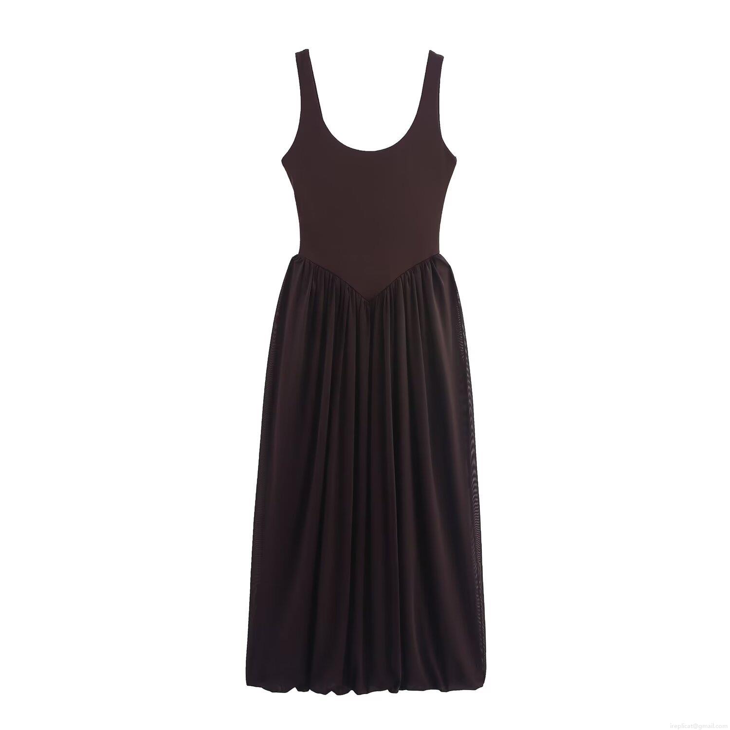 • Women Sleeveless Mesh Patchwork Maxi Dress Elegant U-Neck Backless Pleated Mesh Long Dress For Evening Party Celebrity Style Balletcore