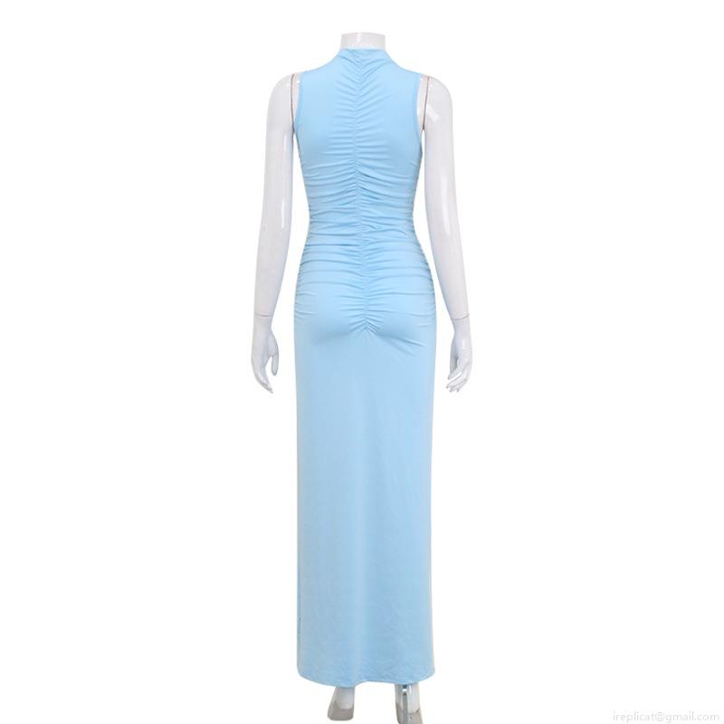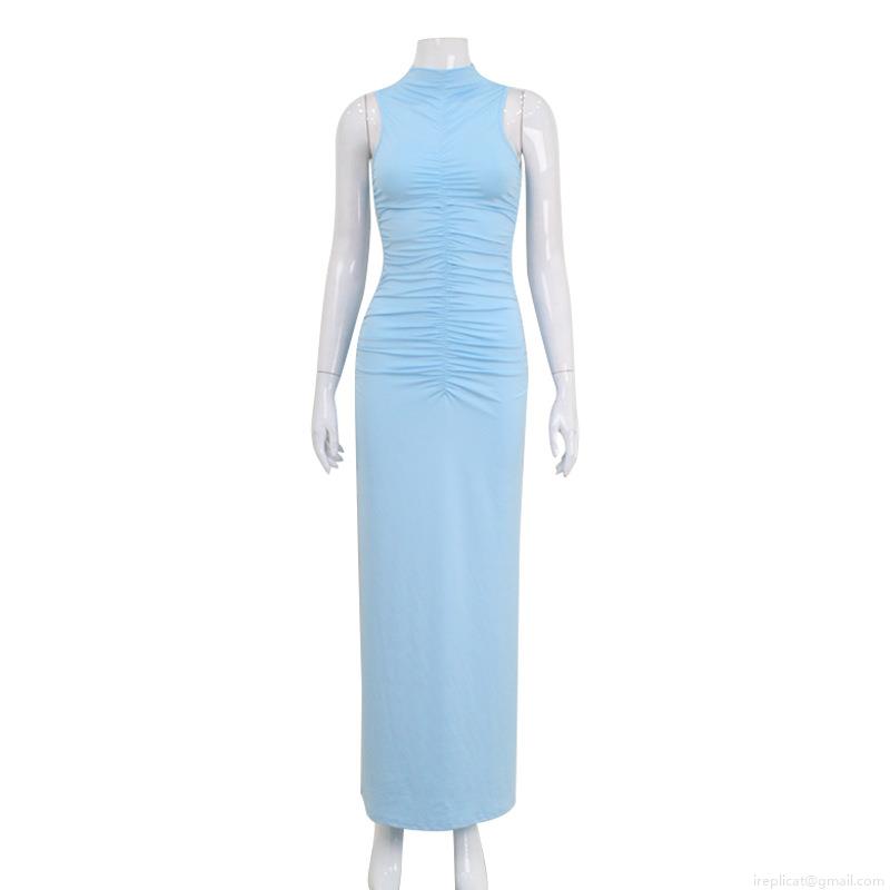 Women Sleeveless Ruched Maxi Dress High Neck Bodycon Polyester Spandex Elegant Solid Color Long Dress For Summer Party Club Sexy Bodycon Dress