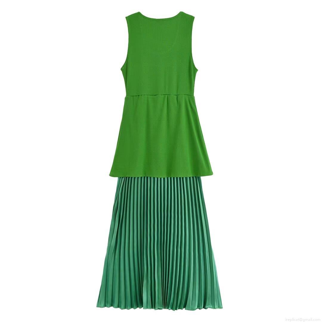 • Women Sleeveless U-Neck Pleated Patchwork Maxi Dress Summer Ribbed Knit Top Flowy Satin Skirt Streetwear Casual Solid Color Long Gown
