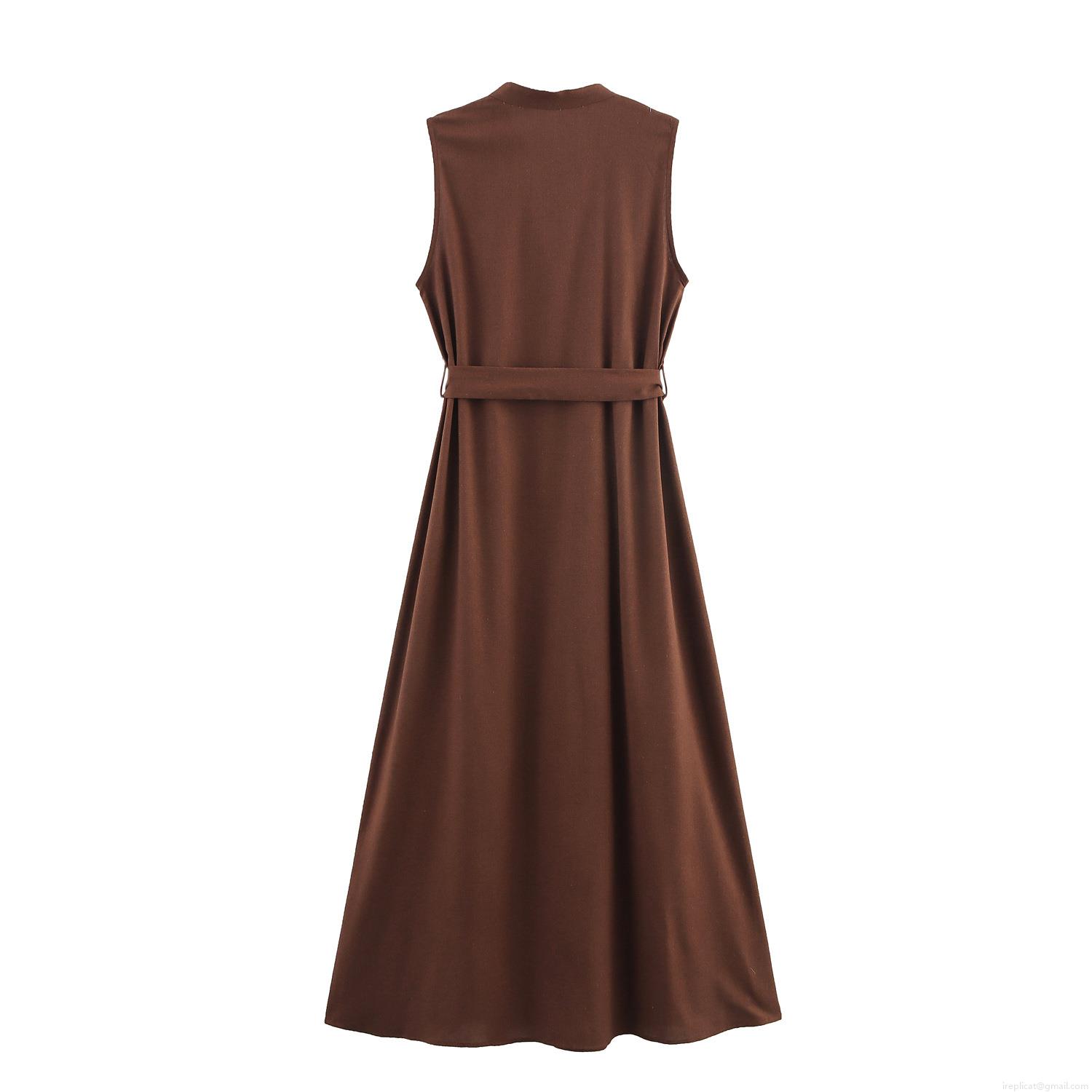 • Women Sleeveless V Neck Maxi Dress Cargo Style Single Breasted Long Dress With Belt Faux Linen Polyester Casual Elegant Office Workwear Sundress For Lady