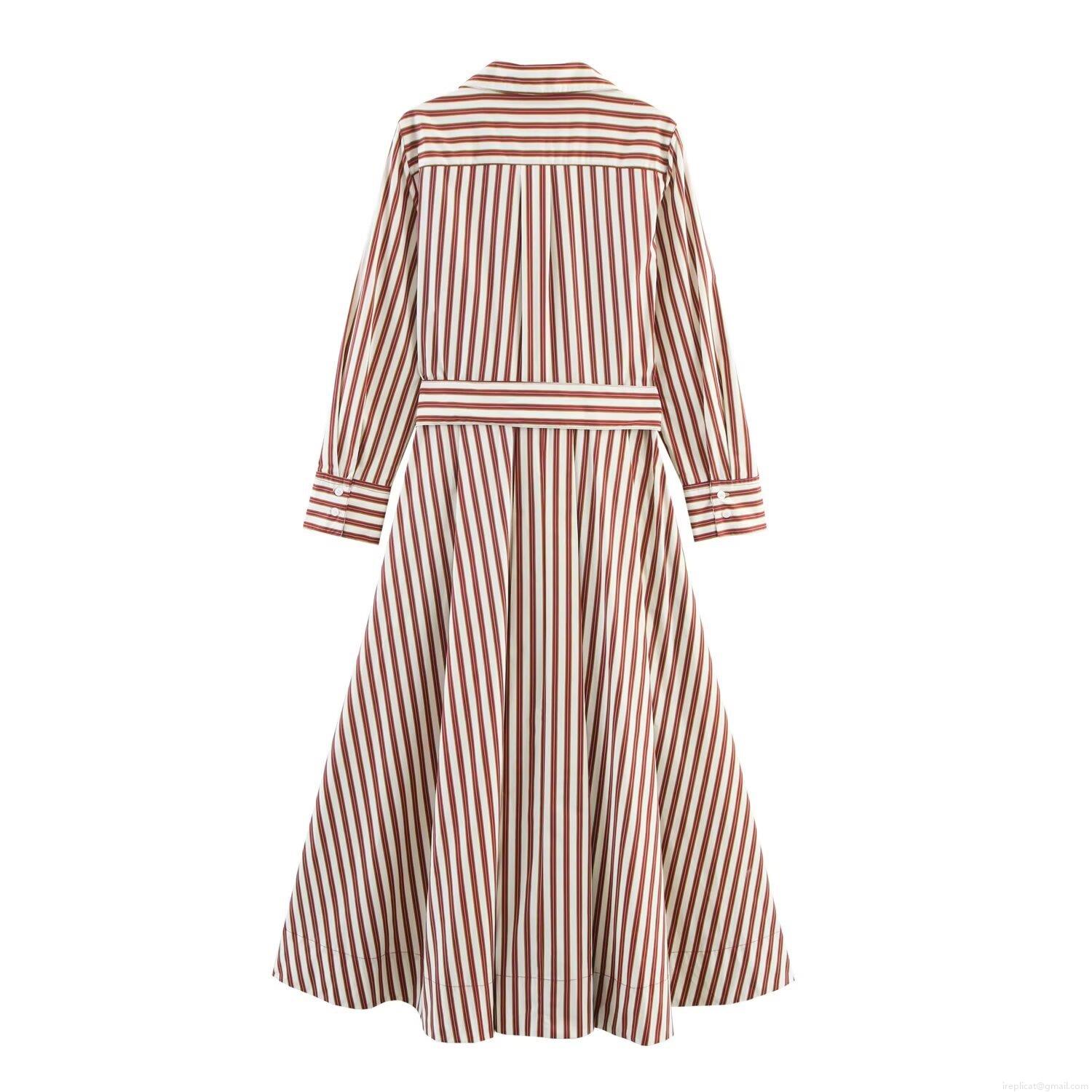 • Women Striped Shirt Dress Elegant Long Sleeve Turn-down Collar Button Down Maxi Dress With Belt Office Lady Poplin Dresses