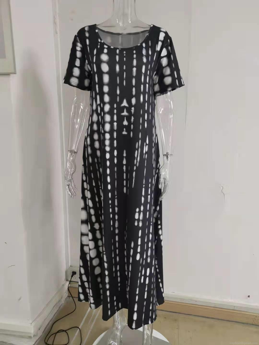 • Women Summer Bohemian Tie-Dye Maxi Dress Round Neck Short Sleeve Large Swing Casual Loose Fit Plus Size Beach Vacation Long Dress
