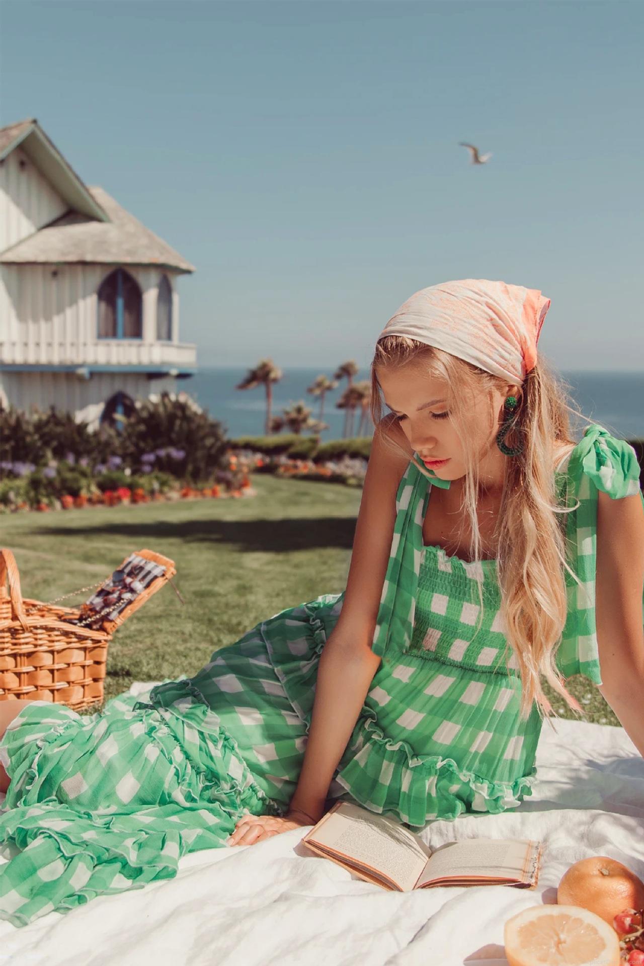 • Women Summer Green Gingham Chiffon Maxi Dress Ruffle Tiered Cake Sundress With Bow Tie Straps Backless Bohemian Vacation Long Dress