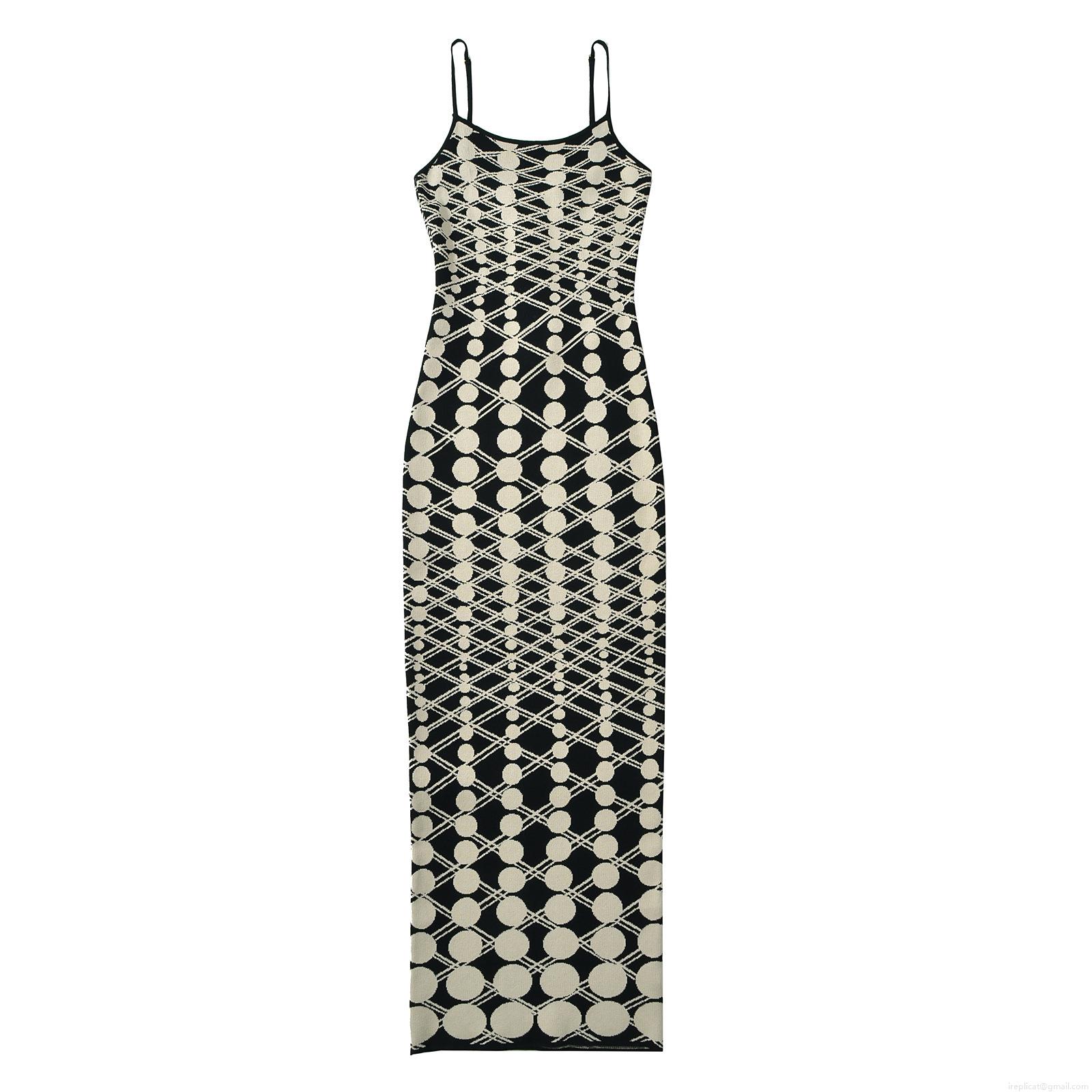• Women Summer Polka Dot Jacquard Knit Cami Dress Sexy V Neck Slim Fit Sleeveless Back Zipper Maxi Long Dress For Streetwear Party Vacation