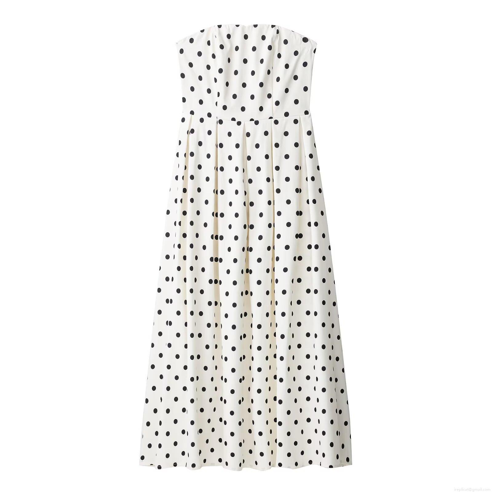 • Women Summer Polka Dot Tube Top Maxi Dress Sexy Backless 100% Polyester A-Line Long Dress For Vacation Party Street Style White Black Dots