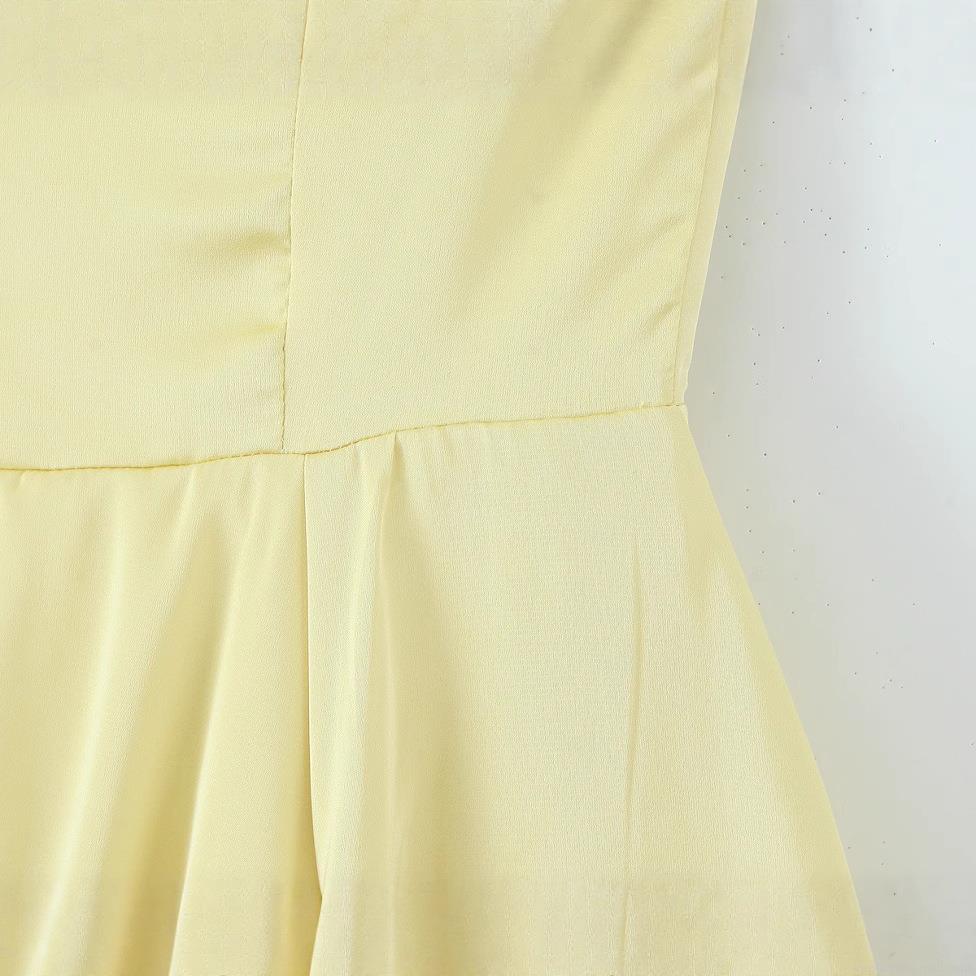 • Women Summer Sexy Satin Yellow Corset Strappy Maxi Dress Backless V-Neck Large Swing Lace Trim Long Dress For Party Vacation