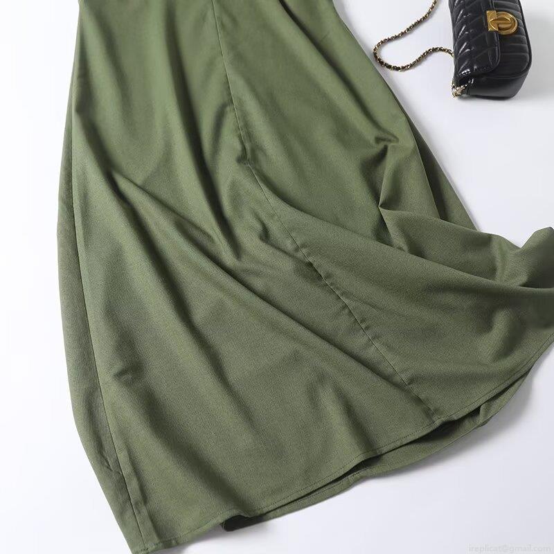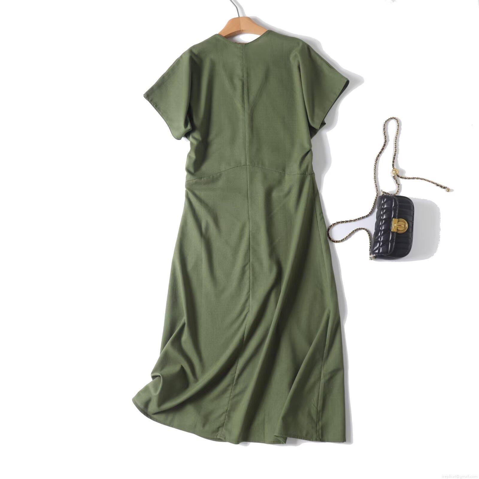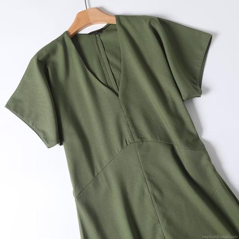 • Women Summer V Neck Short Sleeve Maxi Dress Cotton Linen Blend High Waist A-Line Side Zipper Casual Solid Color Army Green Long Dress