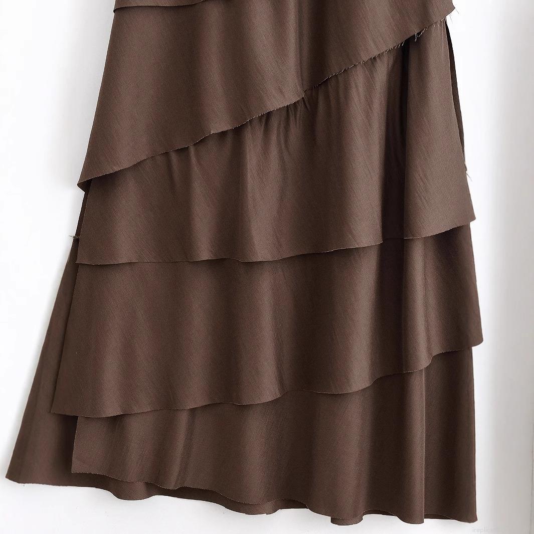 Solid Color, Ruffles, V-neck, Cake Skirt, Layered Decoration