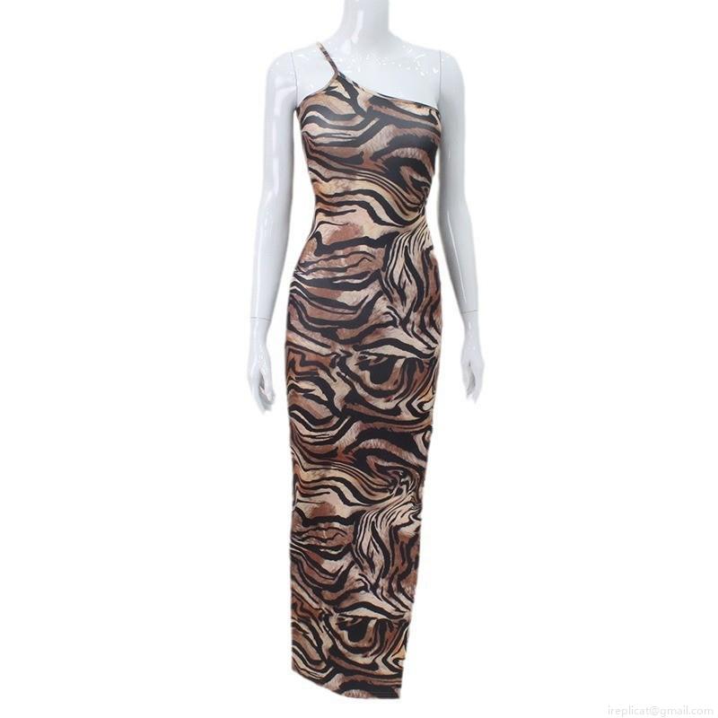 • Women Tiger Print One Shoulder Maxi Dress Sexy High Slit Bodycon Long Dress Polyester Spandex Sleeveless Evening Party Clubwear Summer Vacation