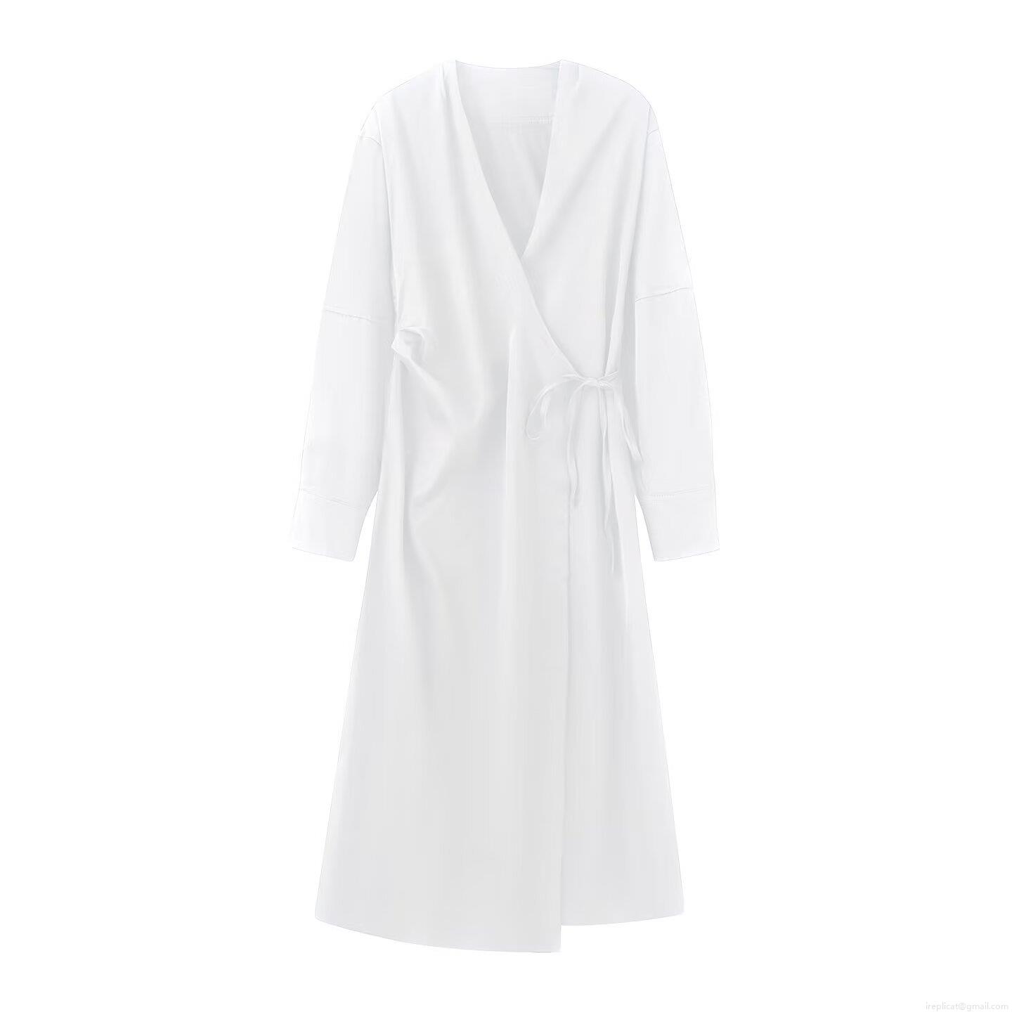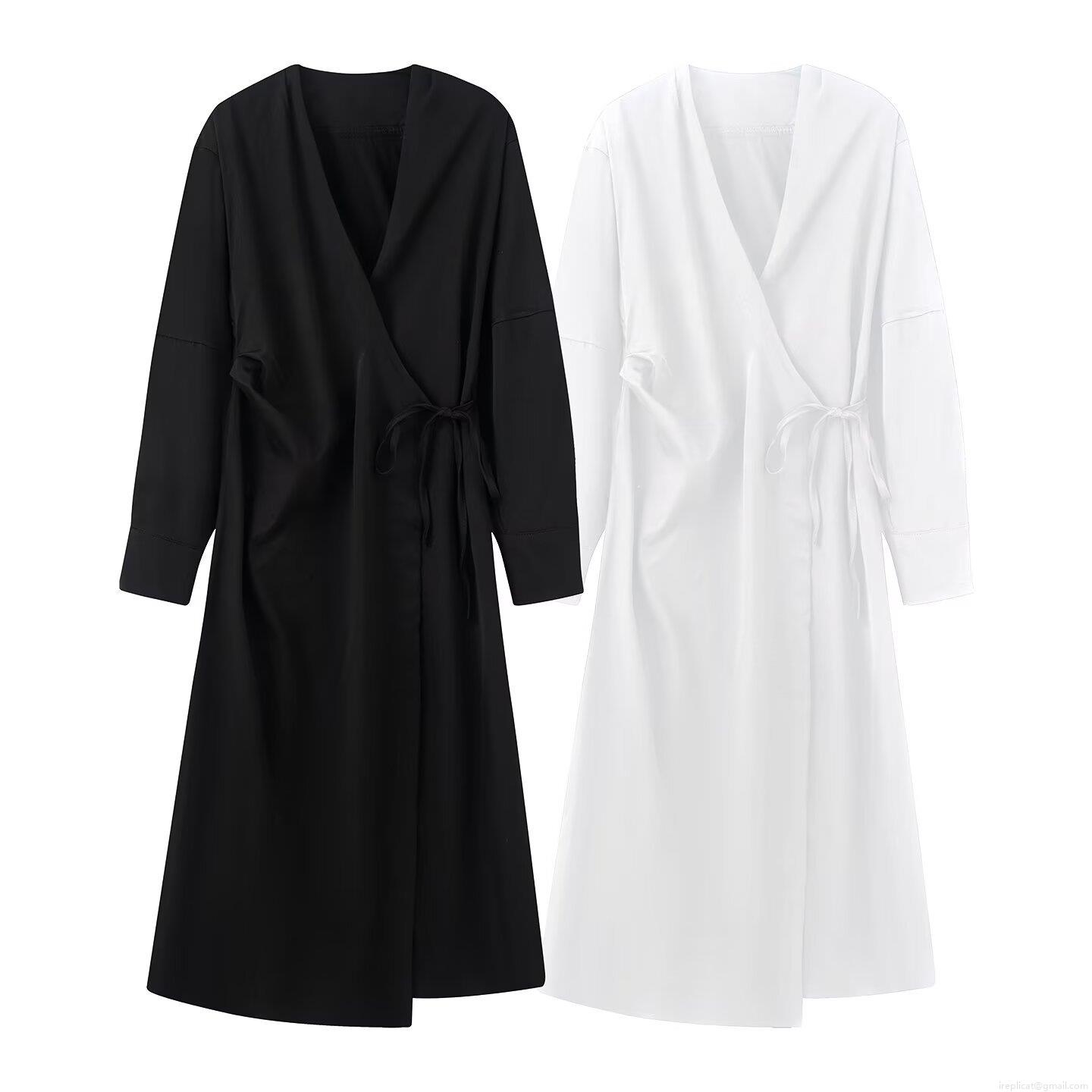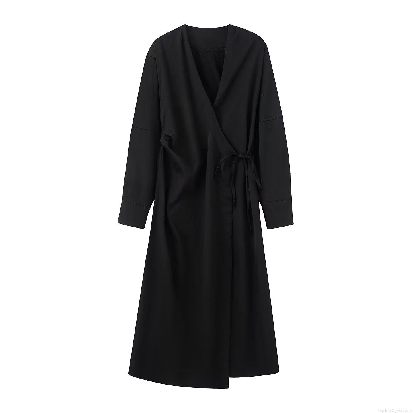 • Women V Neck Long Sleeve Wrap Dress Elegant Solid Color Tie Waist Shirt Maxi Dress For Autumn Streetwear Party Fashion Dresses