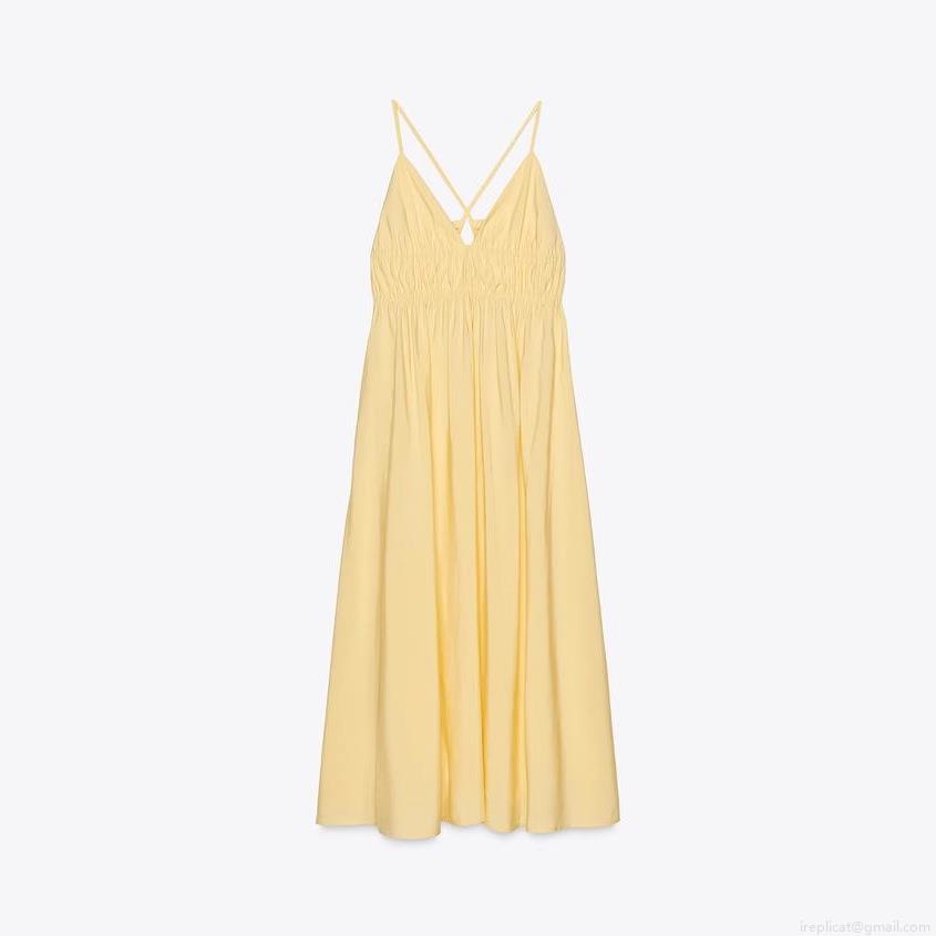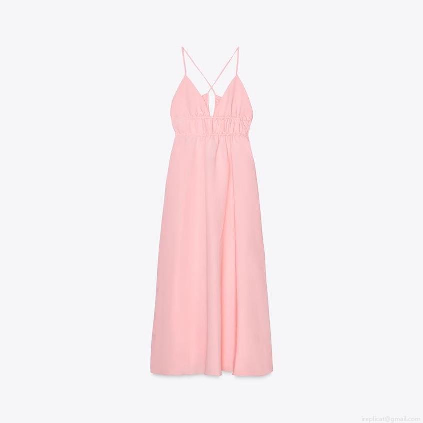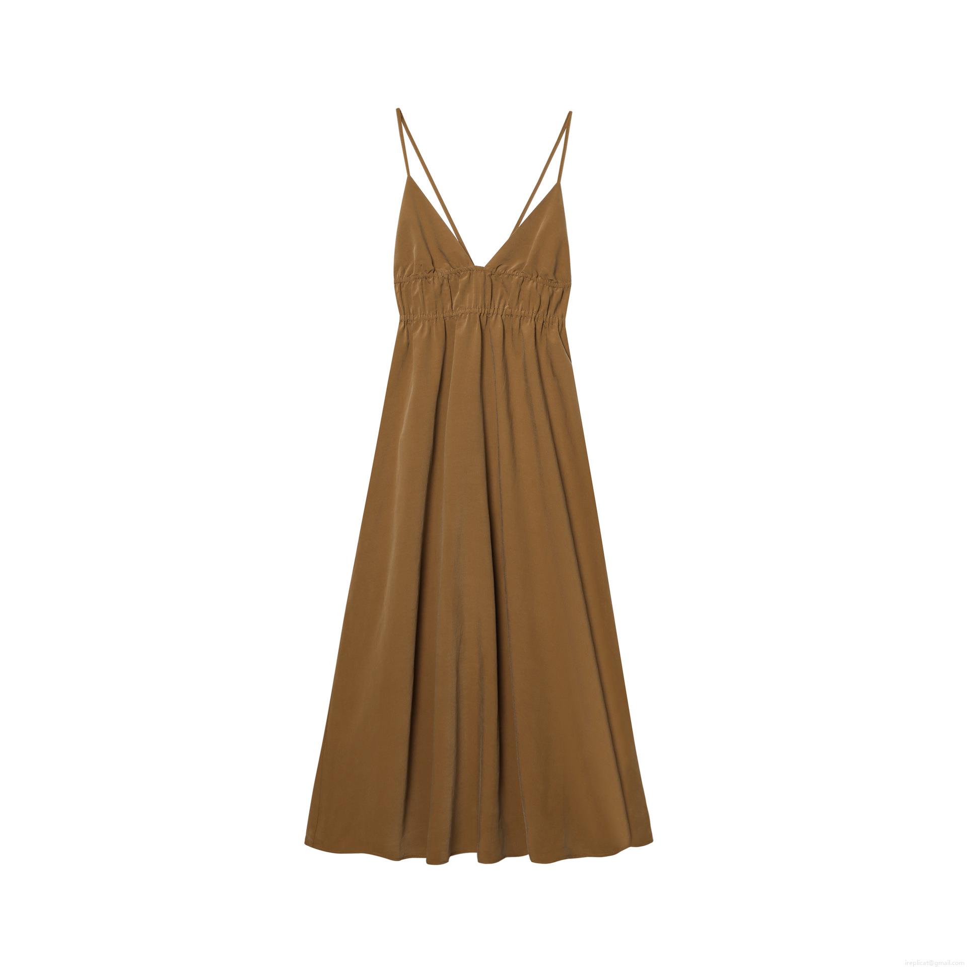 • Women V Neck Sling Maxi Dress Polyester Cupro Cotton Solid Color Empire Waist Pleated Cross Back Elegant Party Vacation Summer Long Dress