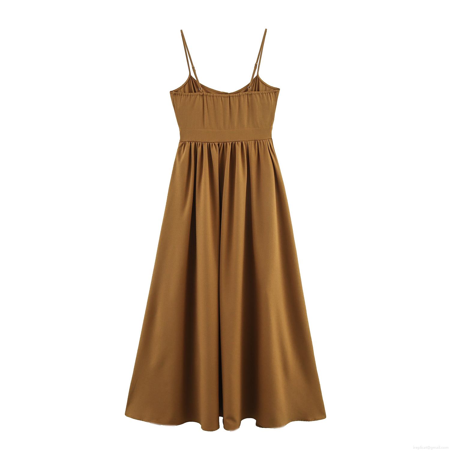• Women Vacation Style Embroidered Coconut Tree Maxi Dress Square Neck High Waist Sleeveless Suspender Long Dress For Summer Travel Elegant