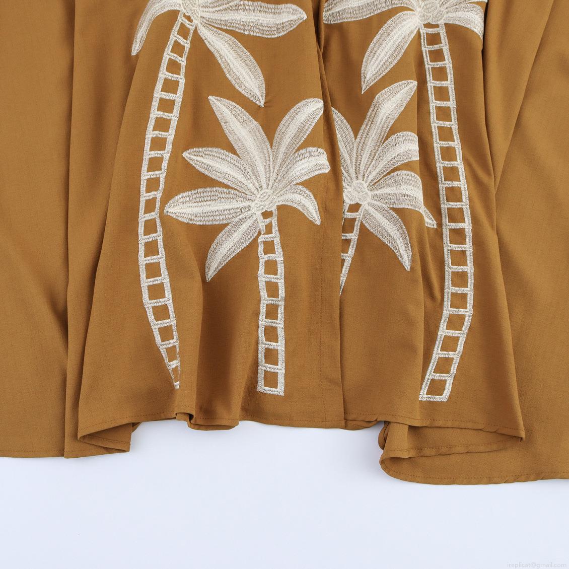Solid Color, Coconut Tree, Embroidery, Zipper, Suspenders, Single-breasted, High-waisted