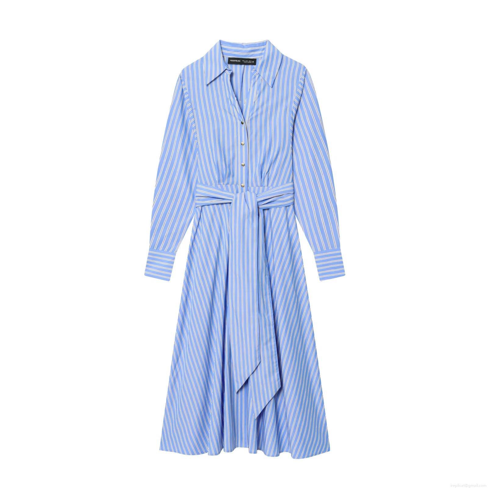 • Women Vertical Striped Shirt Dress Long Sleeve Lapel Collar Button Up Maxi Dresses With Waist Belt Casual Fashion Elegant A-Line Gown For Office Daily Wear